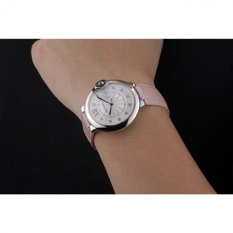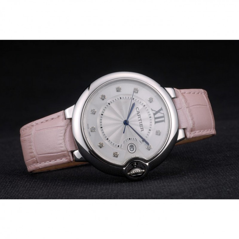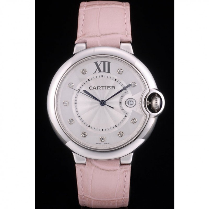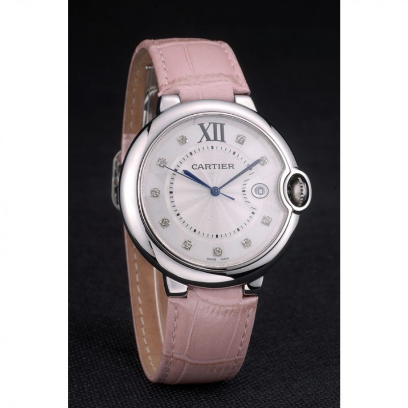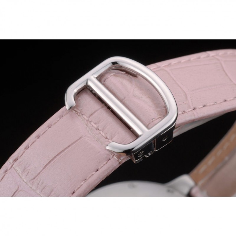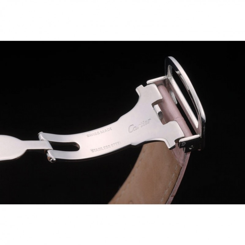 pulsera: correa de piel de cocodrilo rosa calor Cartier en relieve con acero inoxidable pulido plegable en cierre con hebilla
