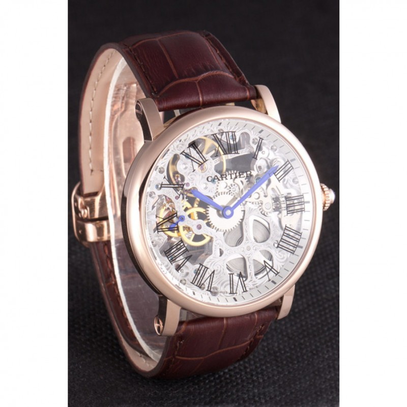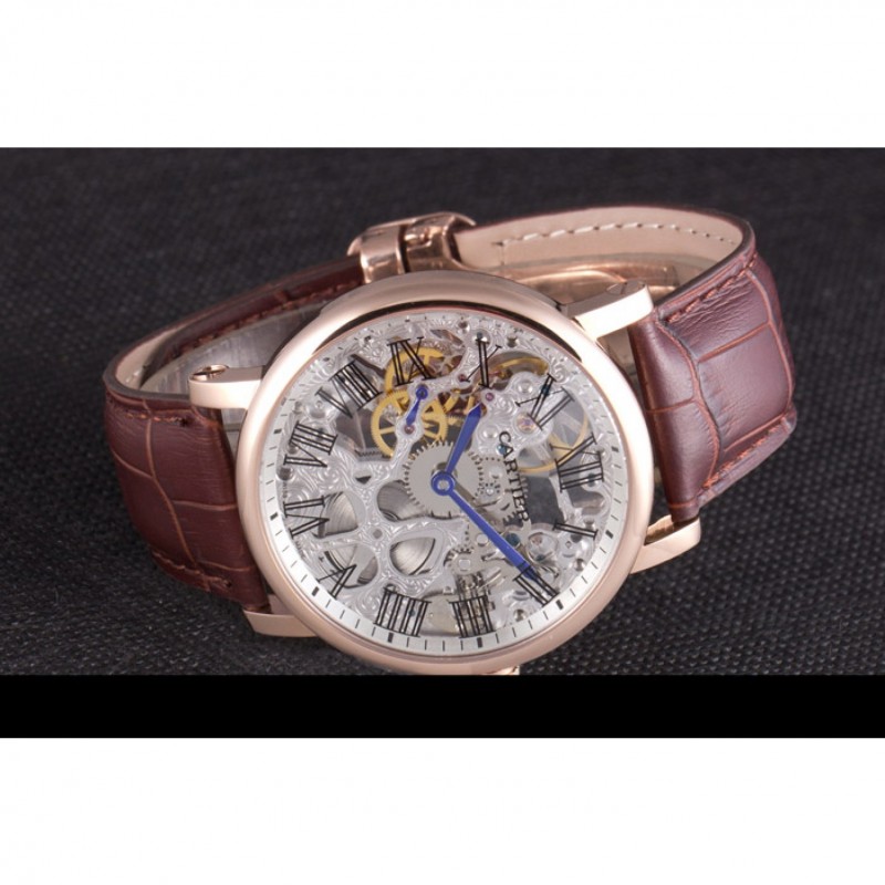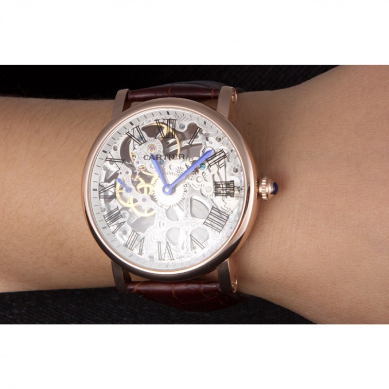 Volver: mecánica transparentes que revelan cristal trasero con grabados Cartier pulido llanta de acero inoxidable