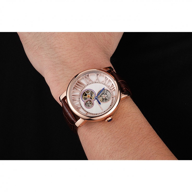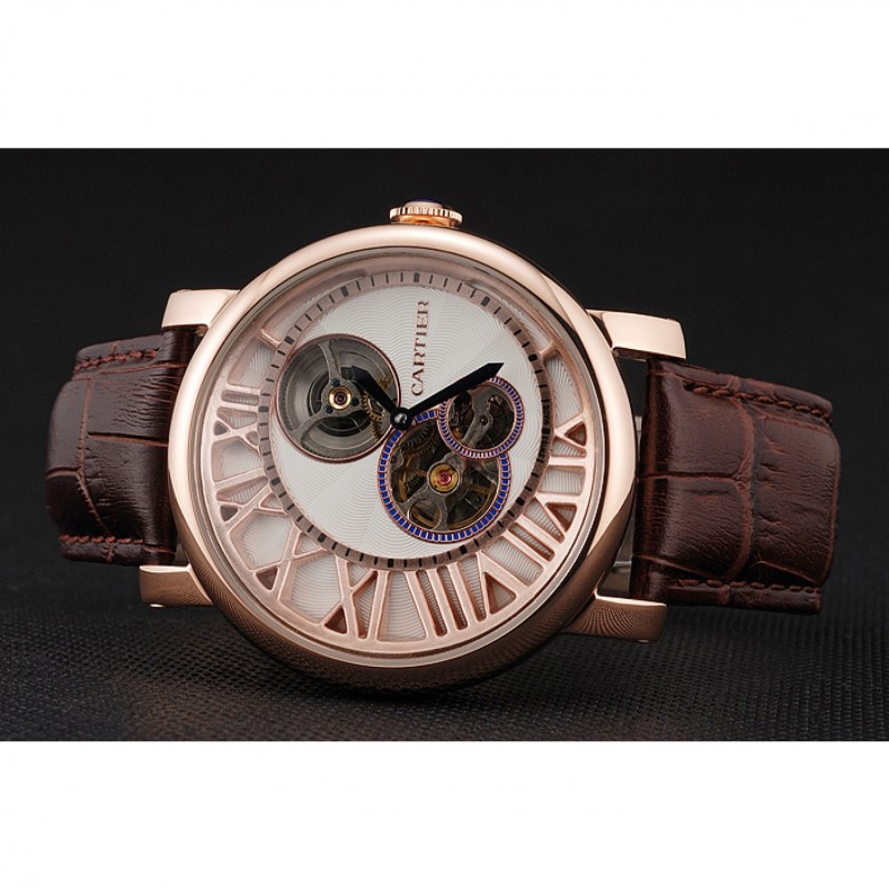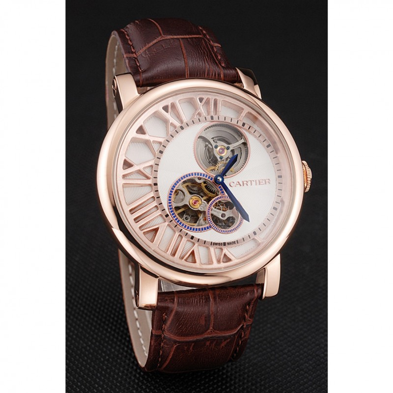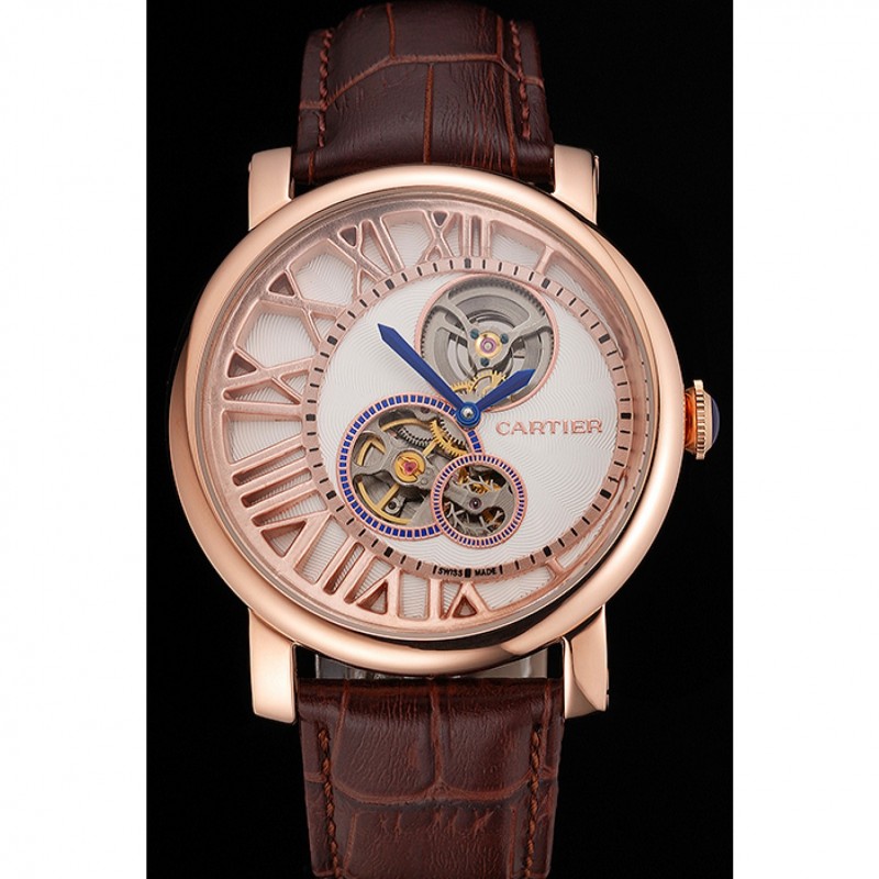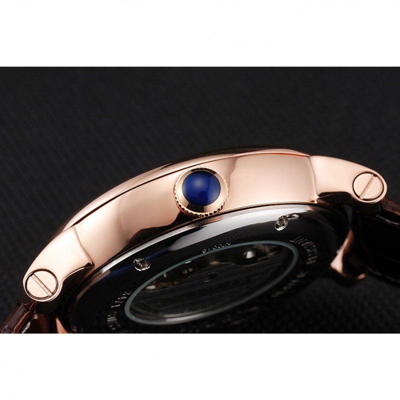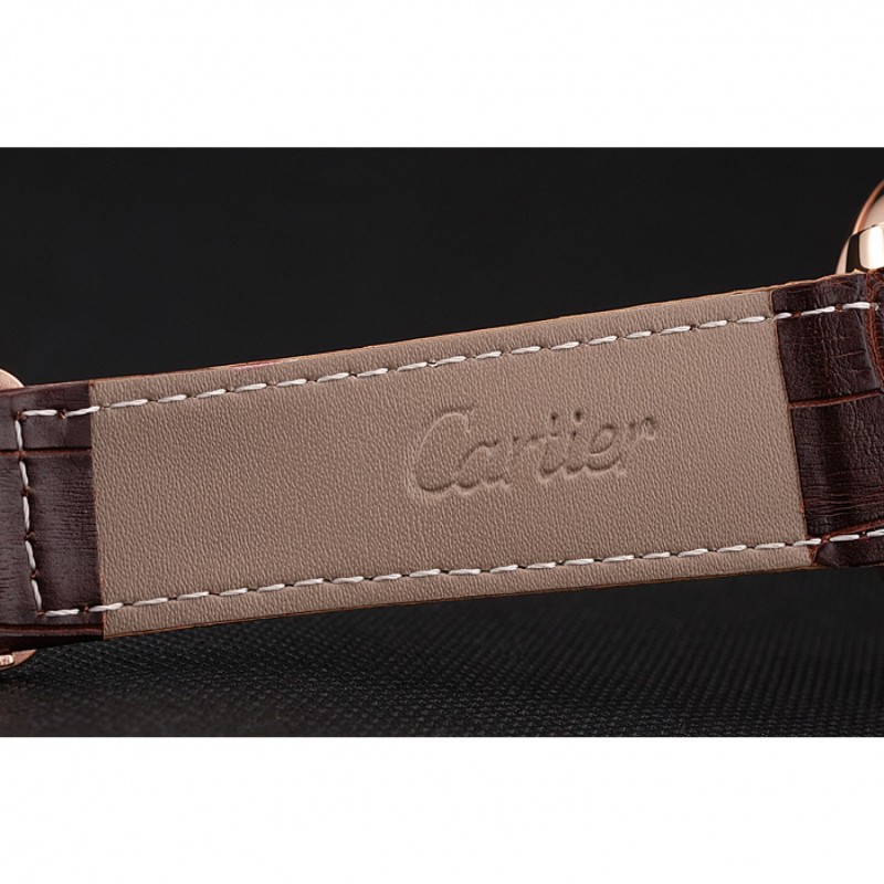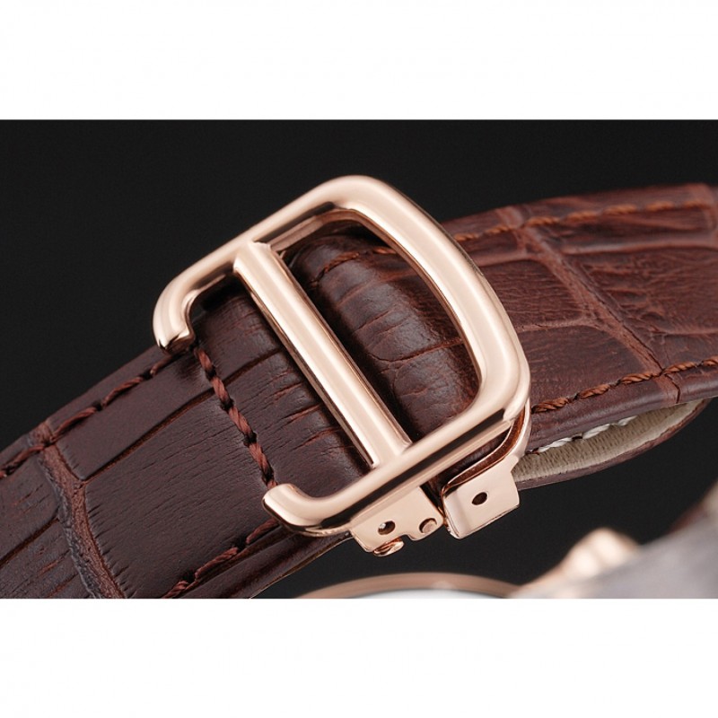 pulsera: plateado en relieve correa de piel de cocodrilo marrón calor Cartier rosa de 18 quilates-oro cierre plegable