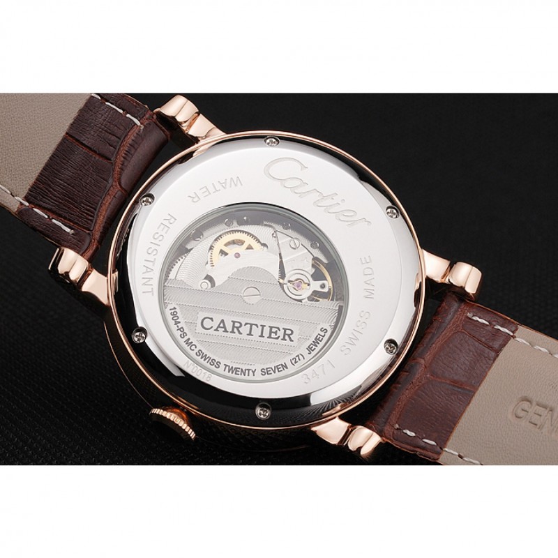 Volver: acero inoxidable pulido atornillado en la parte trasera con la mecánica transparentes ventana y grabados Cartier revelando
