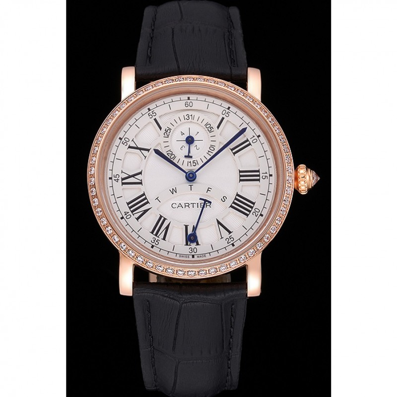 pulsera: en relieve correa de piel de cocodrilo negro calor Cartier rosa de 18 quilates chapado en oro cierre plegable