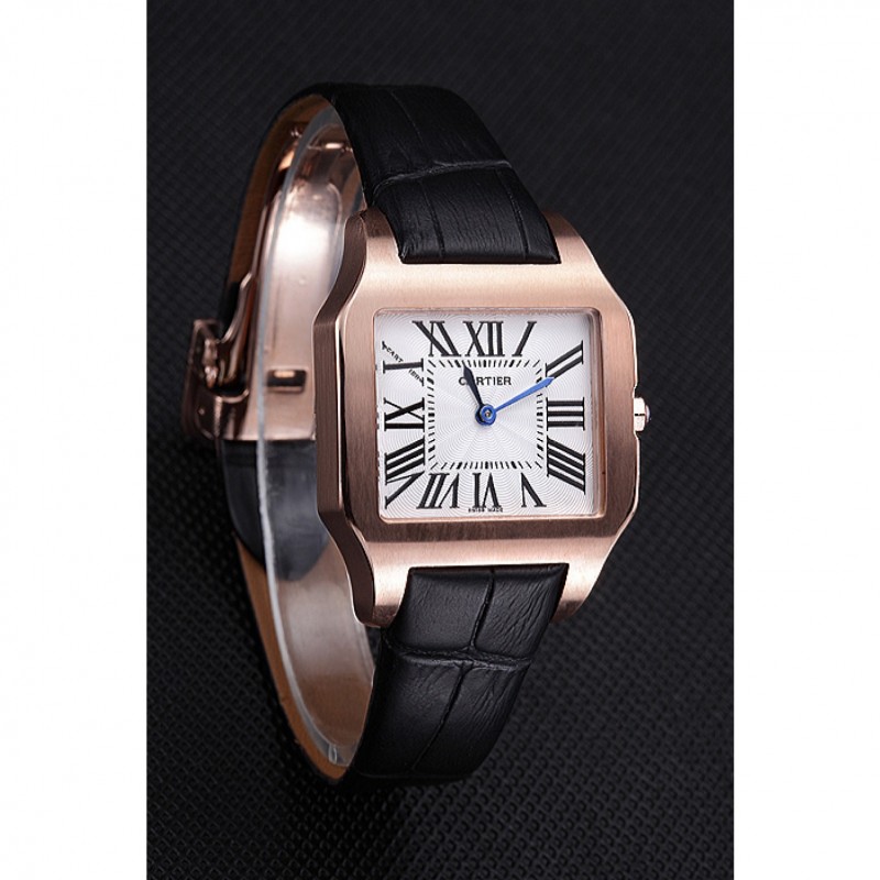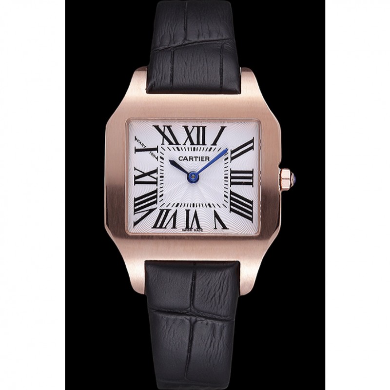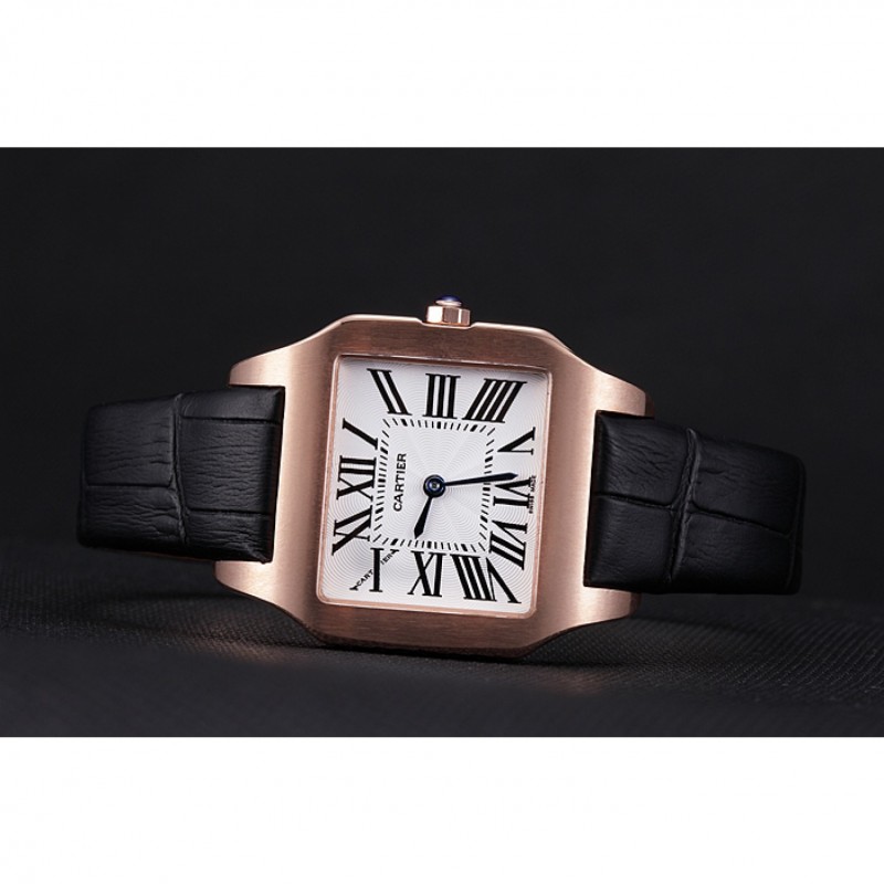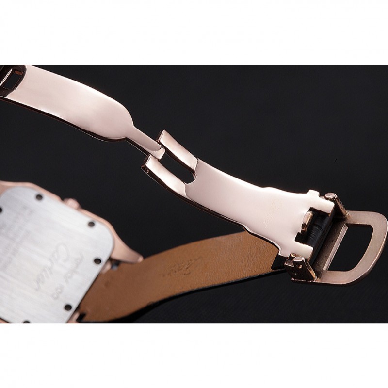 pulsera: plateado en relieve correa de piel de cocodrilo negro calor Cartier rosa de 18 quilates-oro plegable en corchete