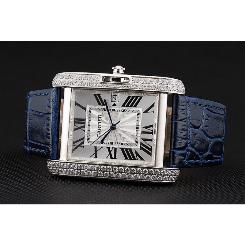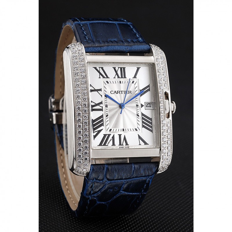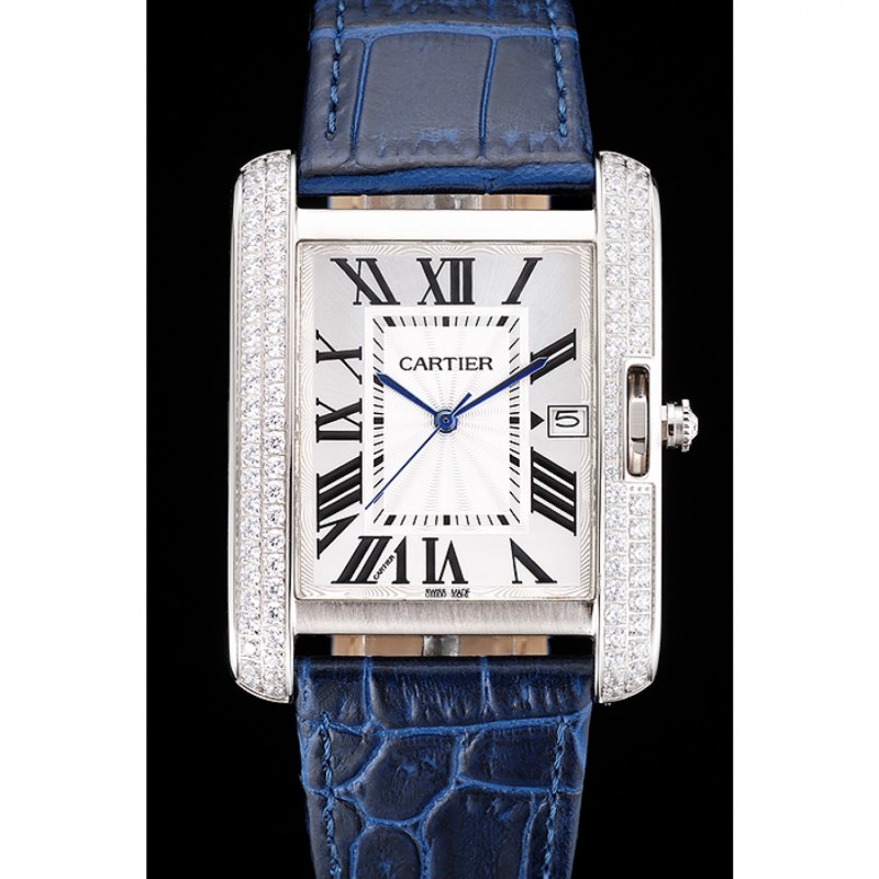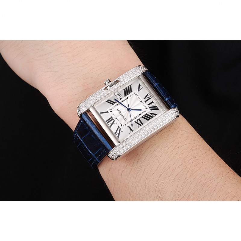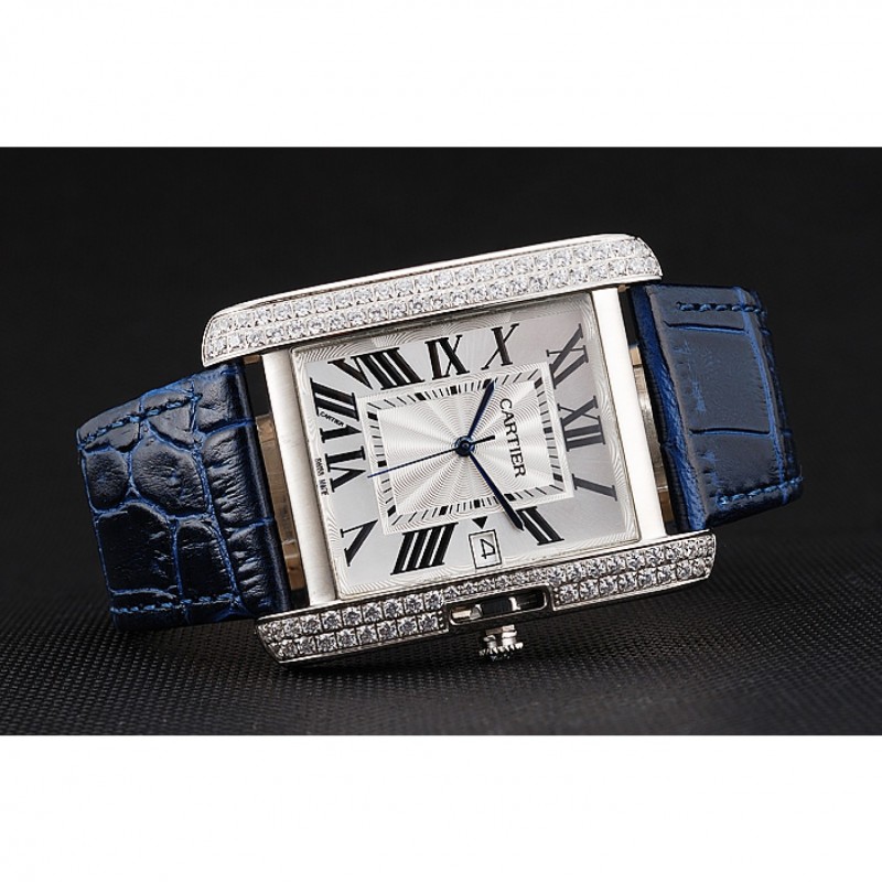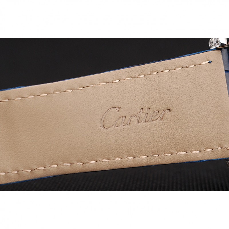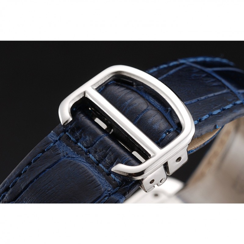 pulsera: correa de cuero azul cocodrilo calor Cartier en relieve con acero inoxidable pulido plegable en cierre con hebilla