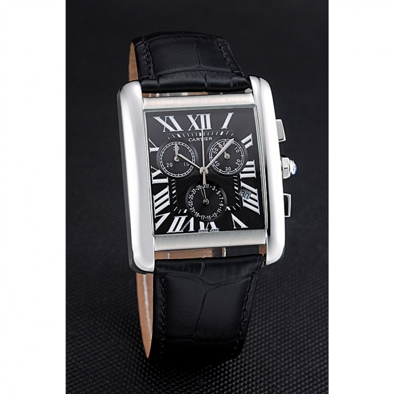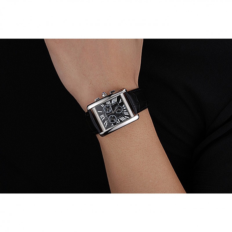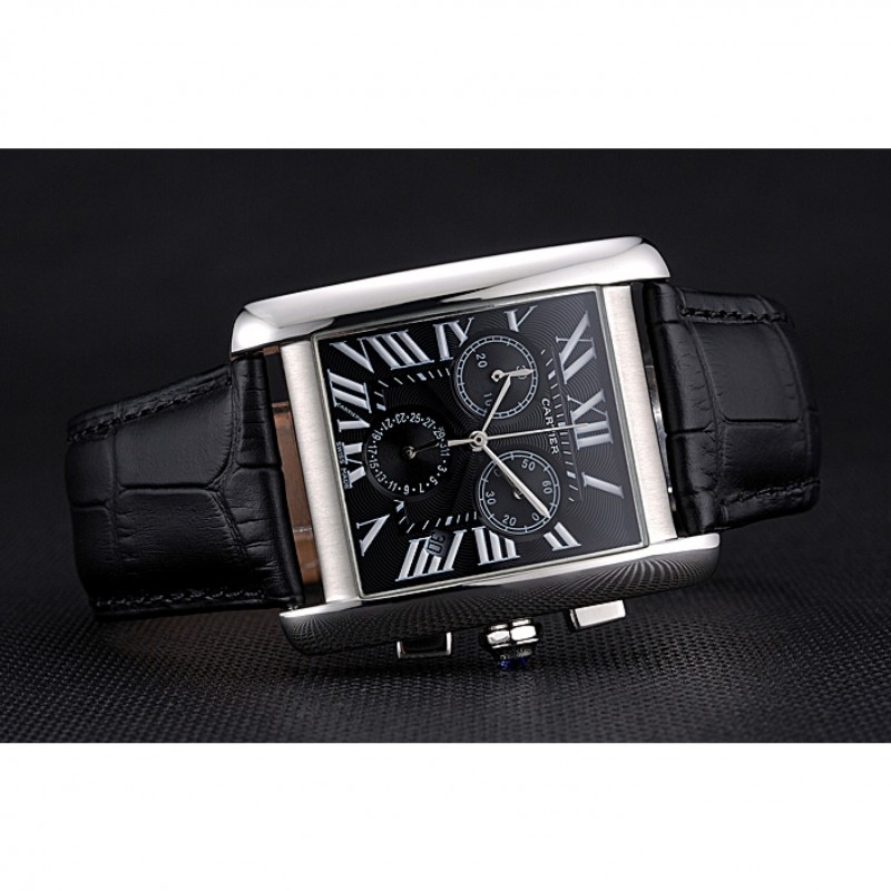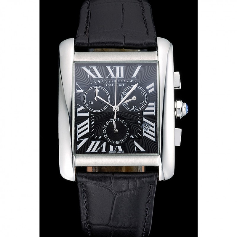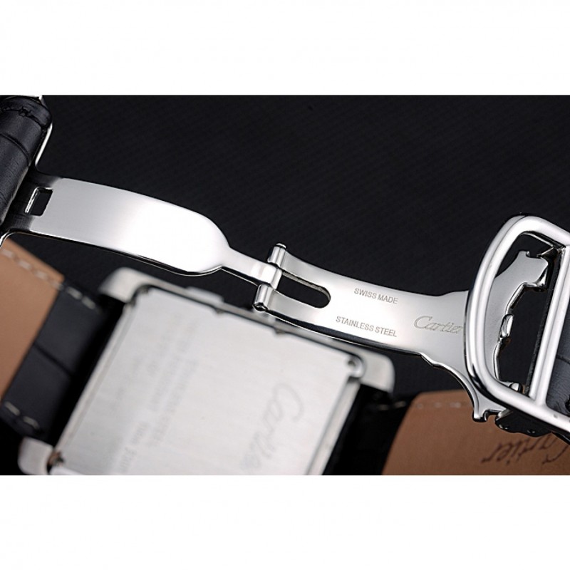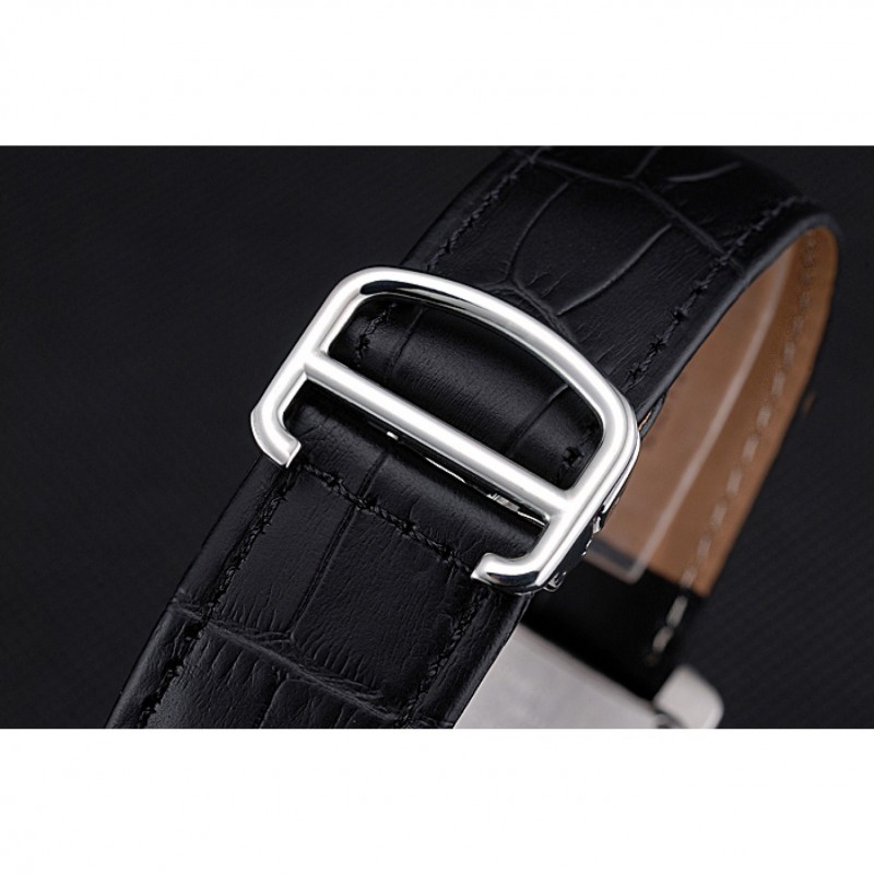 pulsera: correa de cuero croodile negro calor Cartier en relieve con acero inoxidable pulido doblar-sobre hebilla de cierre