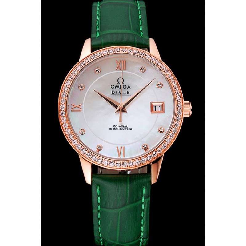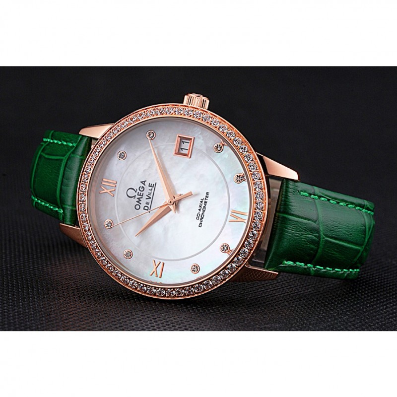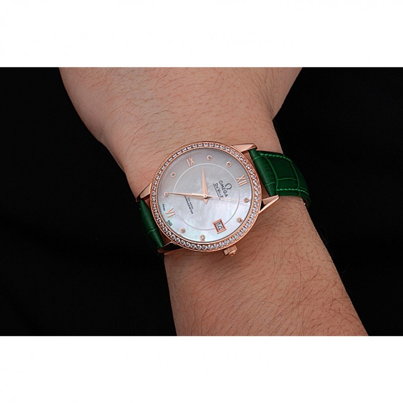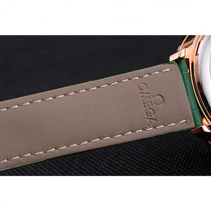 pulsera: logo y el calor Omega correa de piel de cocodrilo verde estampada con el logo de Omega 18k grabado de oro rosa plateado empuje de liberación del gancho del corchete