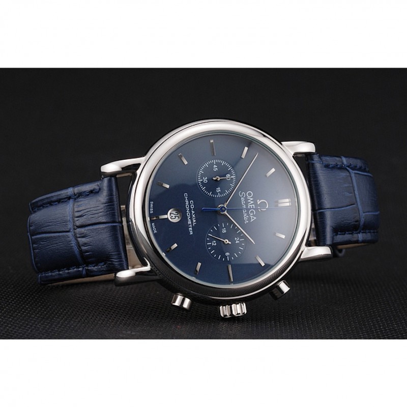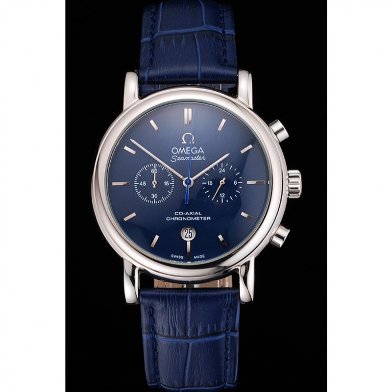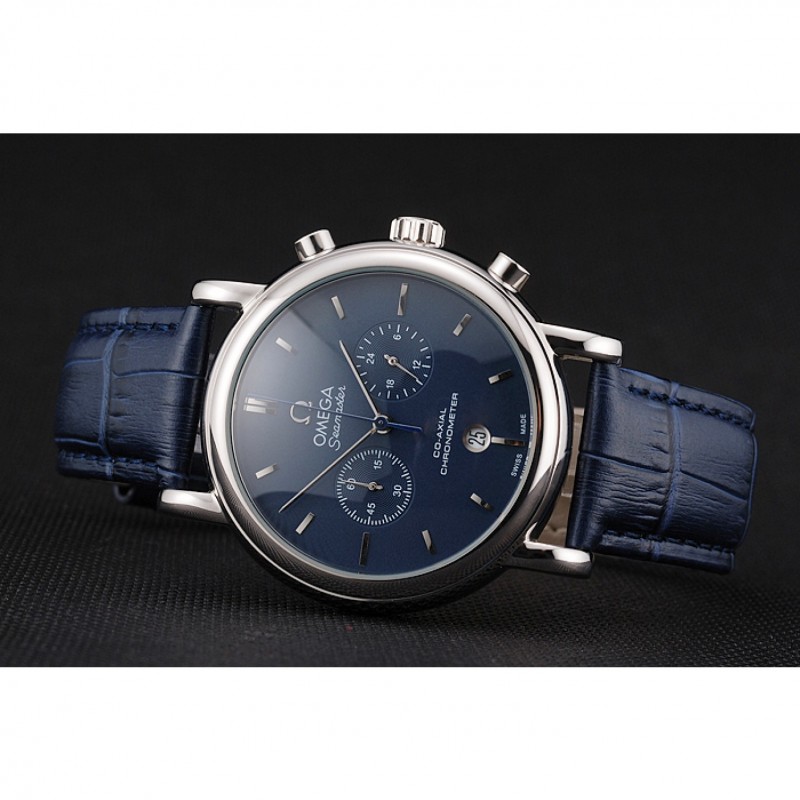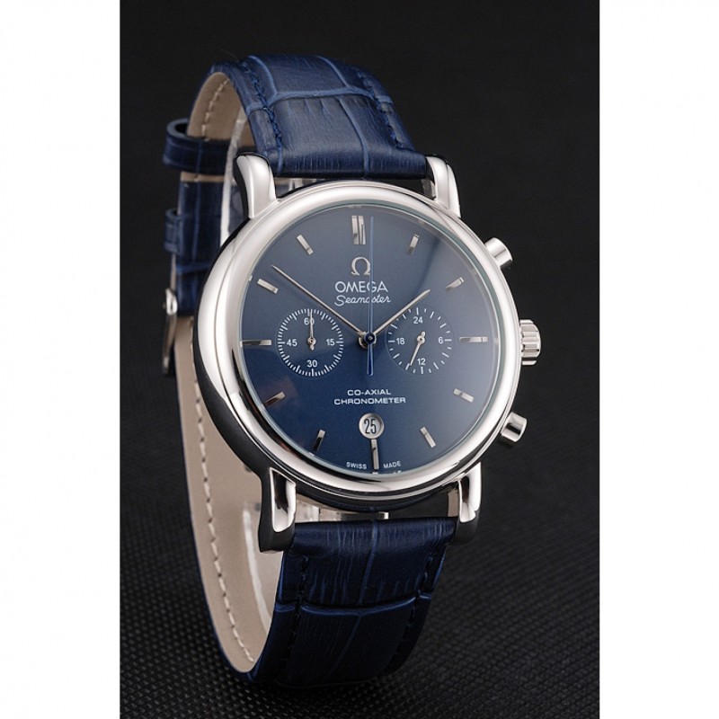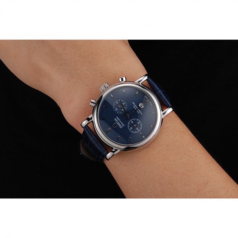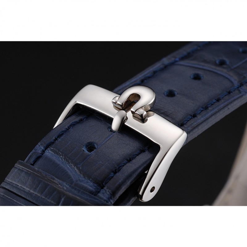 pulsera: Omega y logo correa de piel de cocodrilo azul en relieve de calor con el logotipo de Omega tallada de acero inoxidable pulido gancho hebilla de cierre