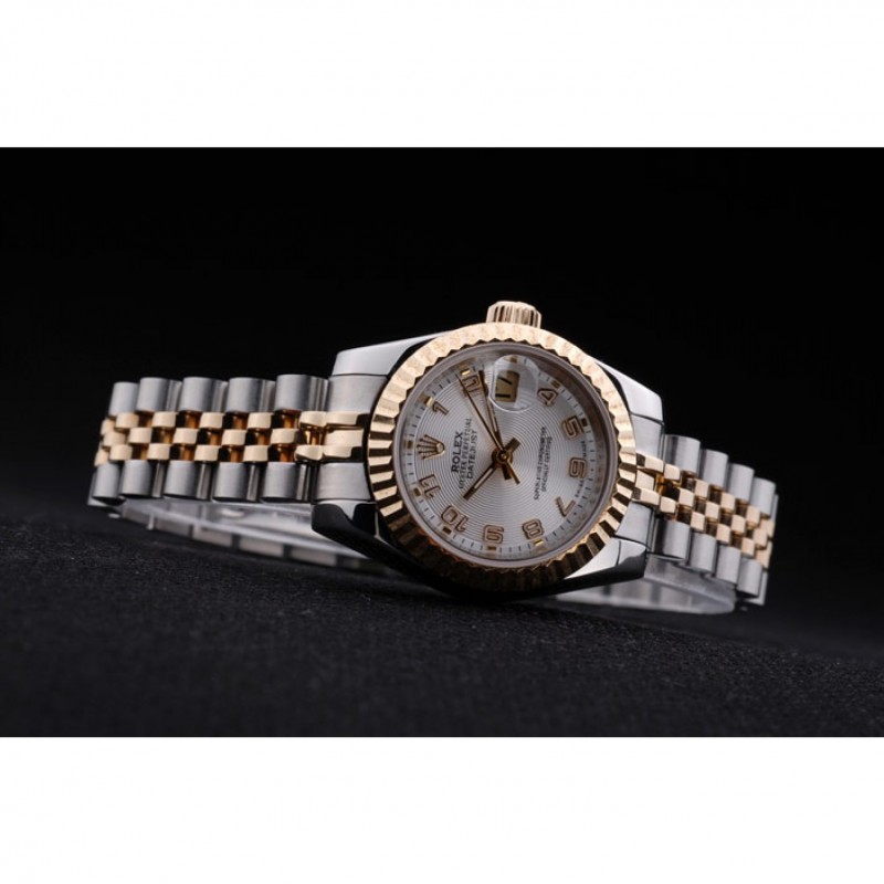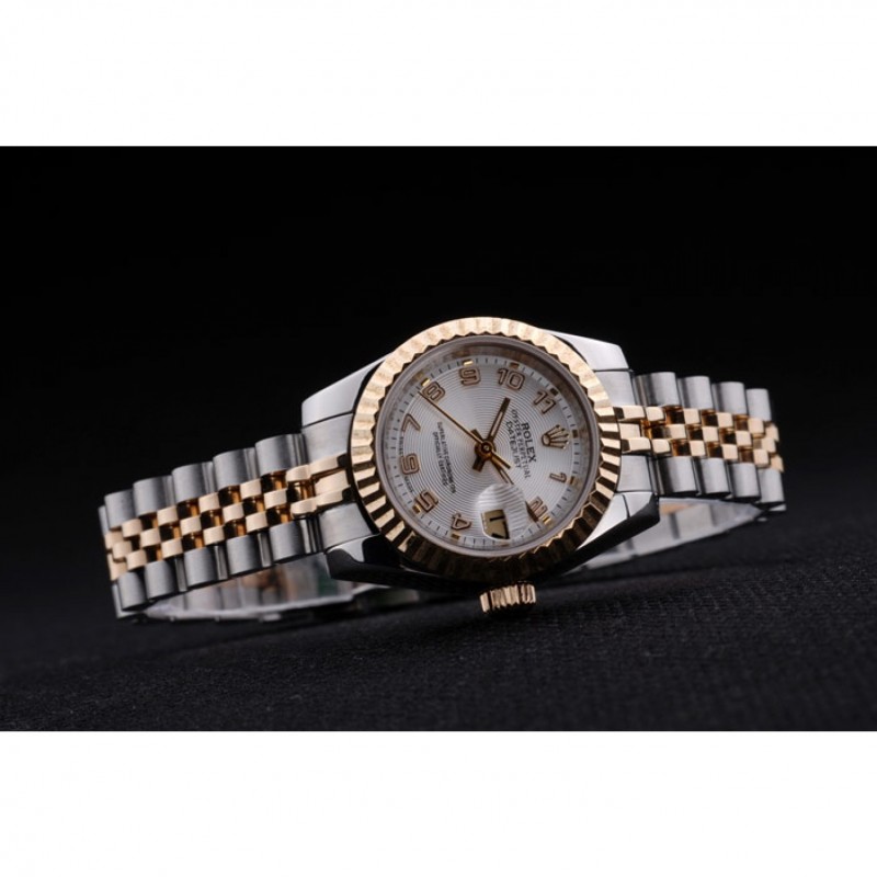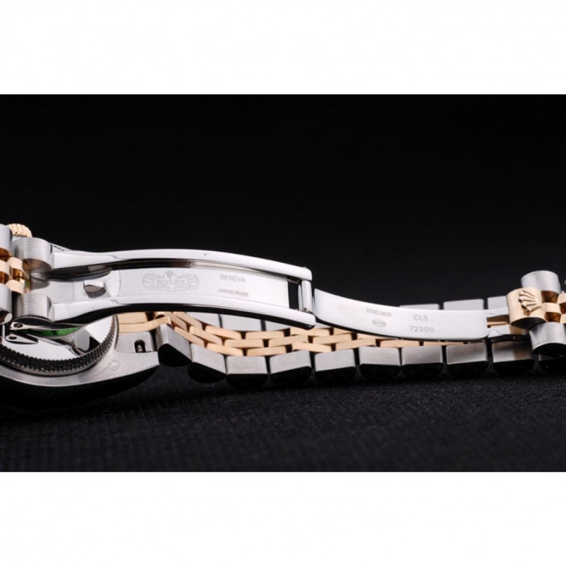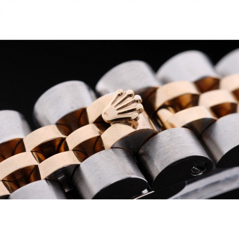 pulsera: Dos tonos de enlace de triple pulsera en acero inoxidable pulido y oro amarillo de 18K chapado en acero con el grabado Rolex cierre oculto que muestra el logotipo de Rolex