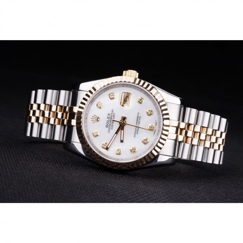 pulsera: Dos tonificado brazalete de eslabones en acero inoxidable cepillado y oro amarillo de 18K chapado en acero con el grabado Rolex cierre oculto que muestra el logotipo de Rolex