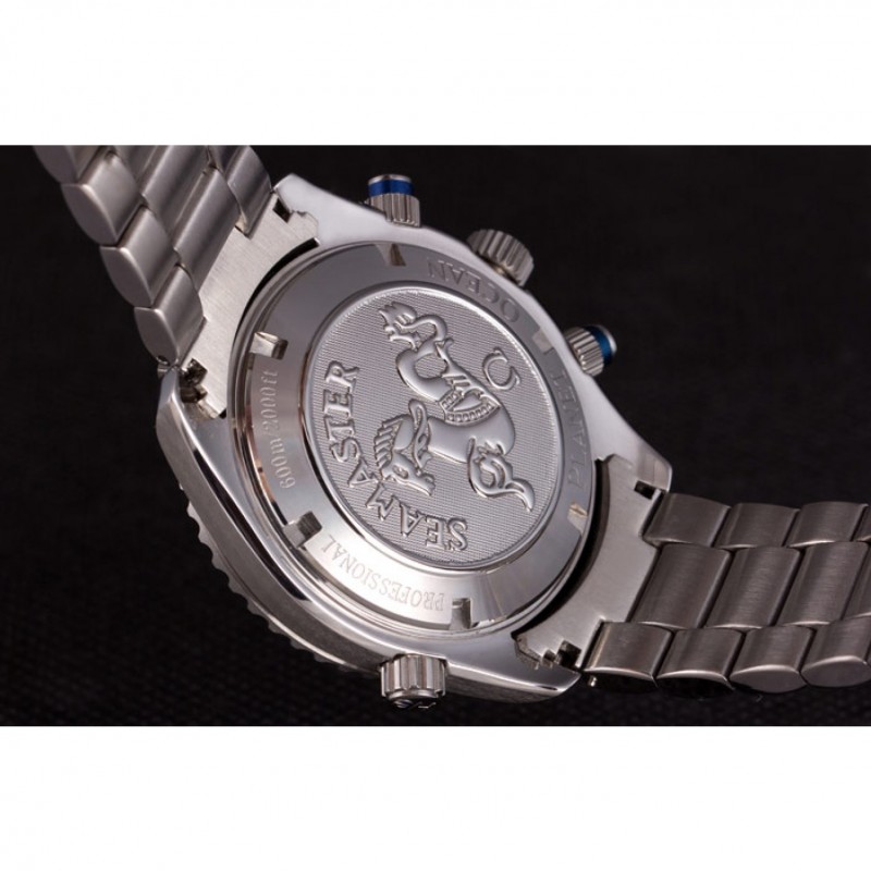 Volver: de acero inoxidable pulido snap-in espalda con Seamaster logo Omega inscripciones