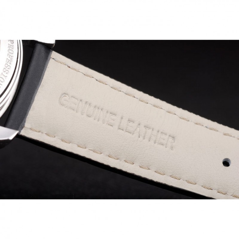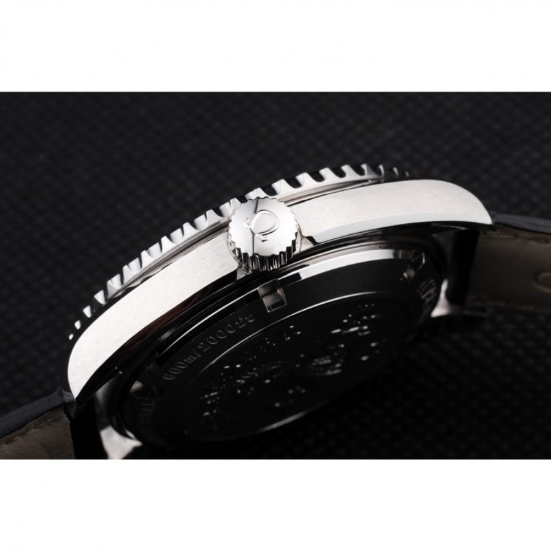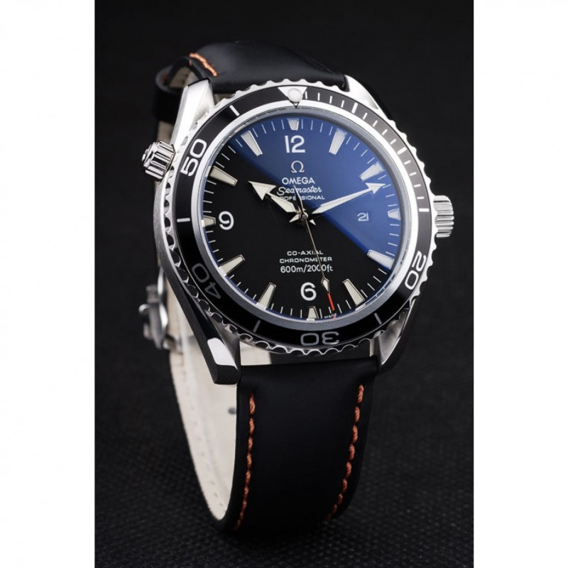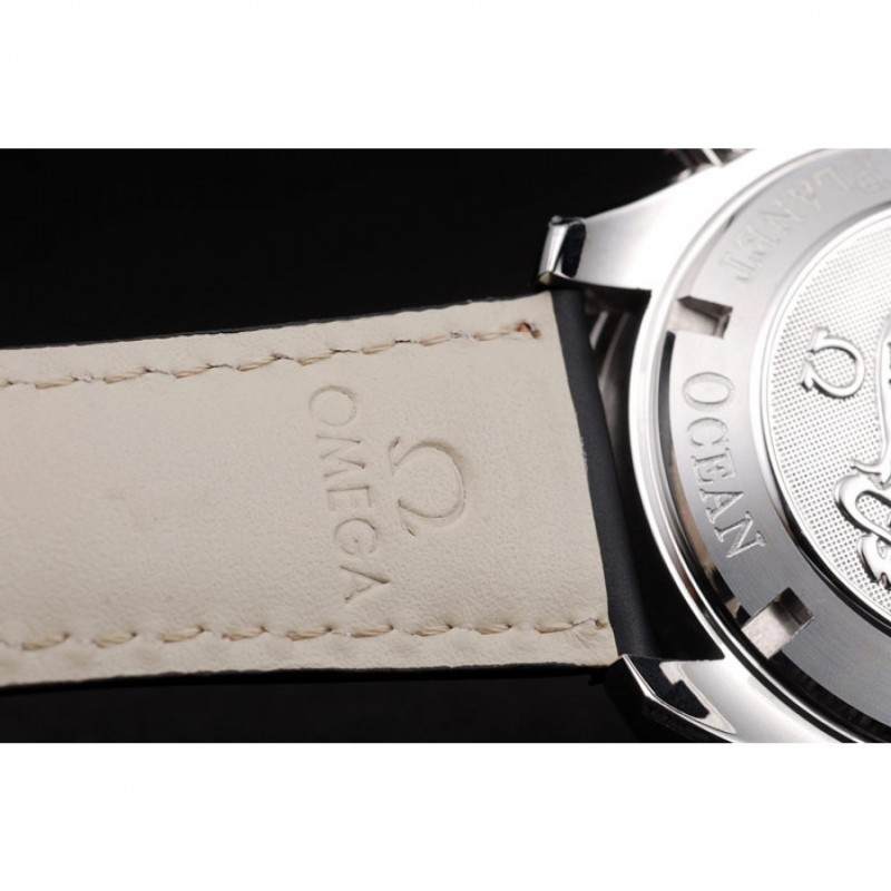 pulsera: Orange cosido correa de cuero negro con el calor en relieve sello de Omega y pulido de acero inoxidable plegable en el corchete con el logotipo de Omega en la parte superior
