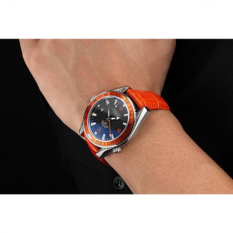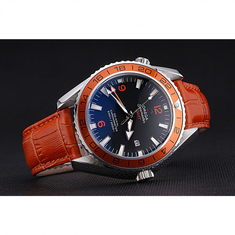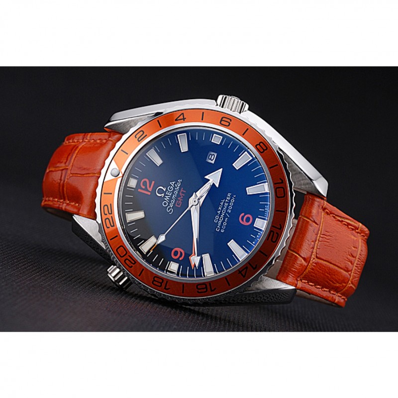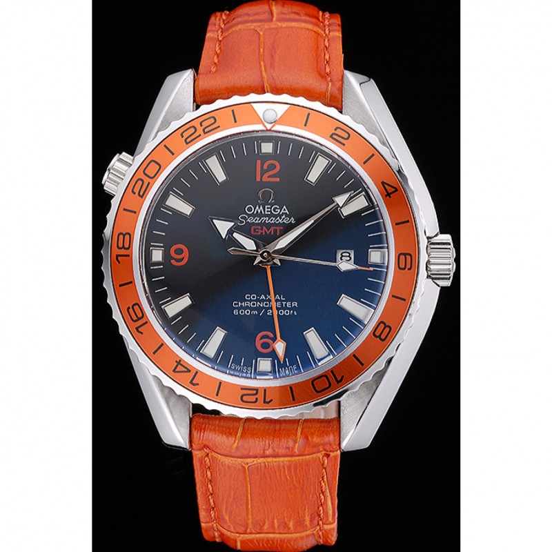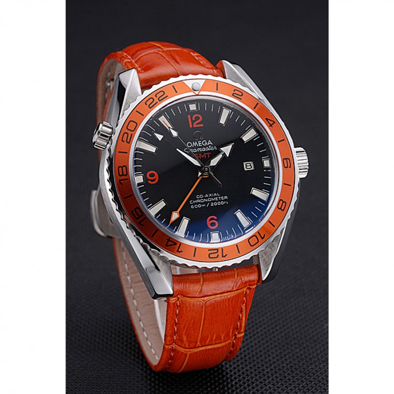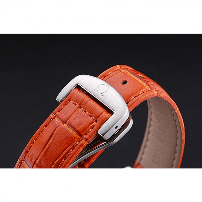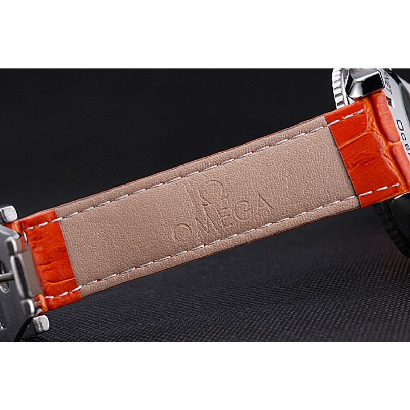 pulsera: Omega y el logotipo de calor en relieve de color naranja correa de piel de cocodrilo con el logotipo de Omega grabado de acero inoxidable cepillado corchete del gancho