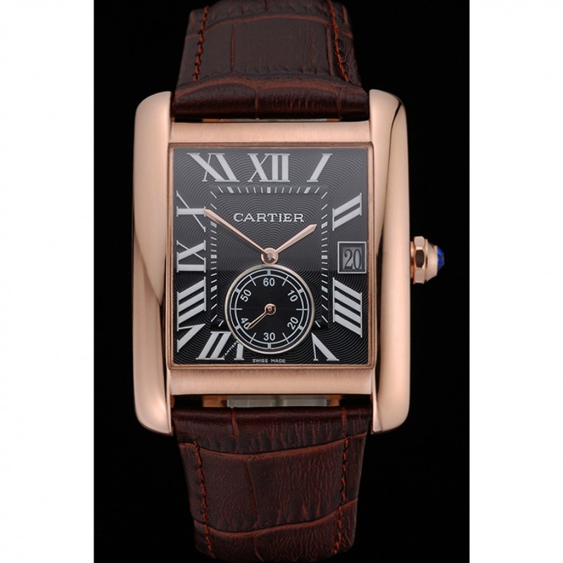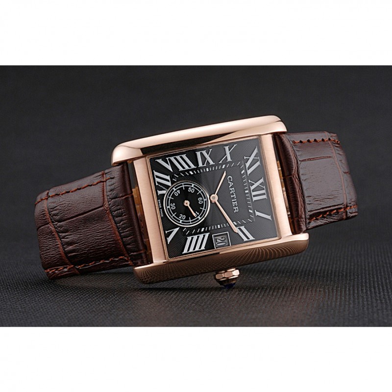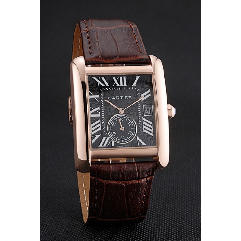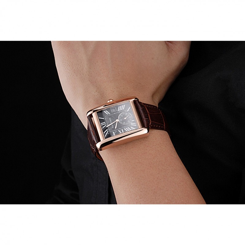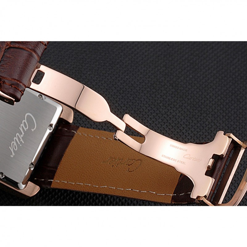pulsera: repujado correa de piel de cocodrilo marrón de calor Cartier rosa de 18 quilates chapado en oro plegable en cierre de broche de presión
