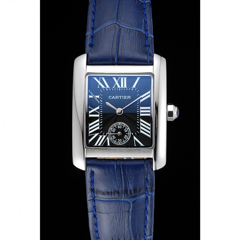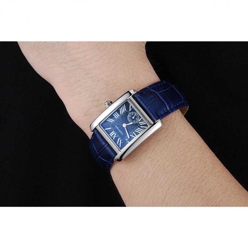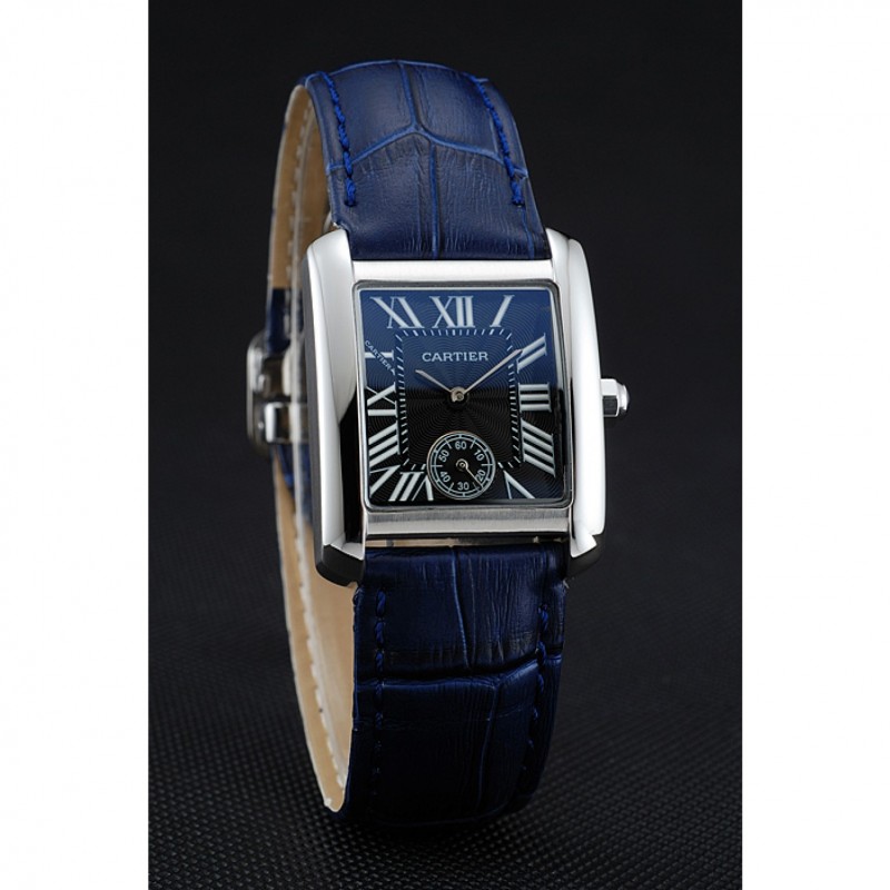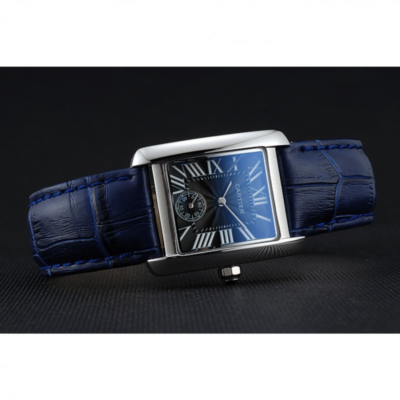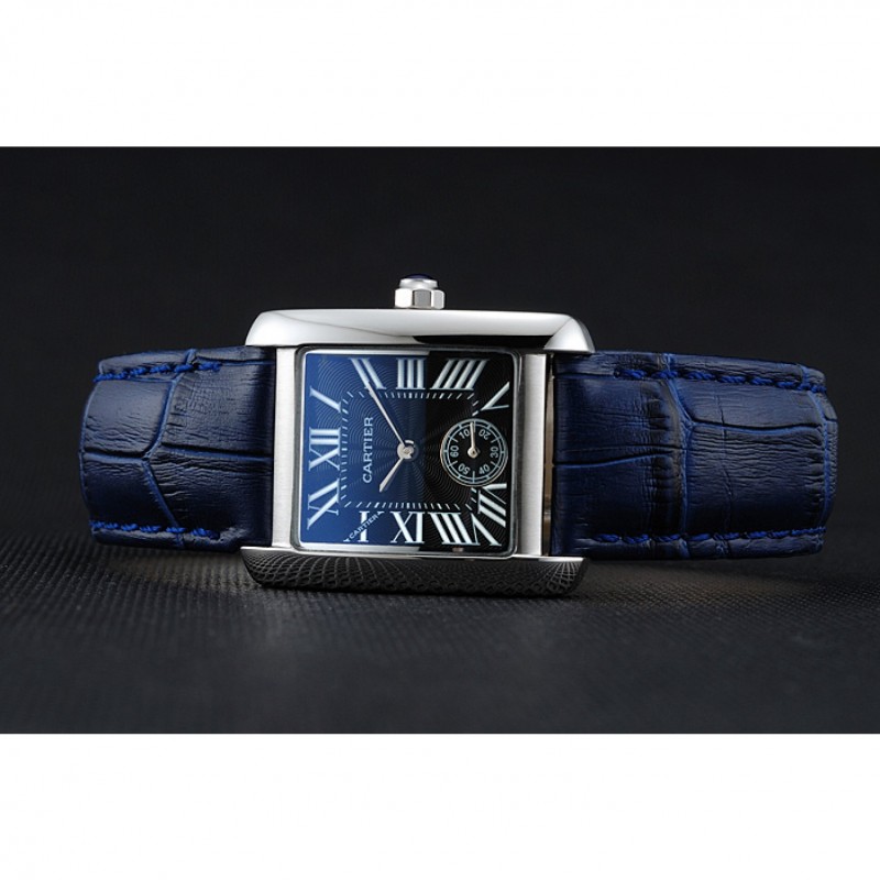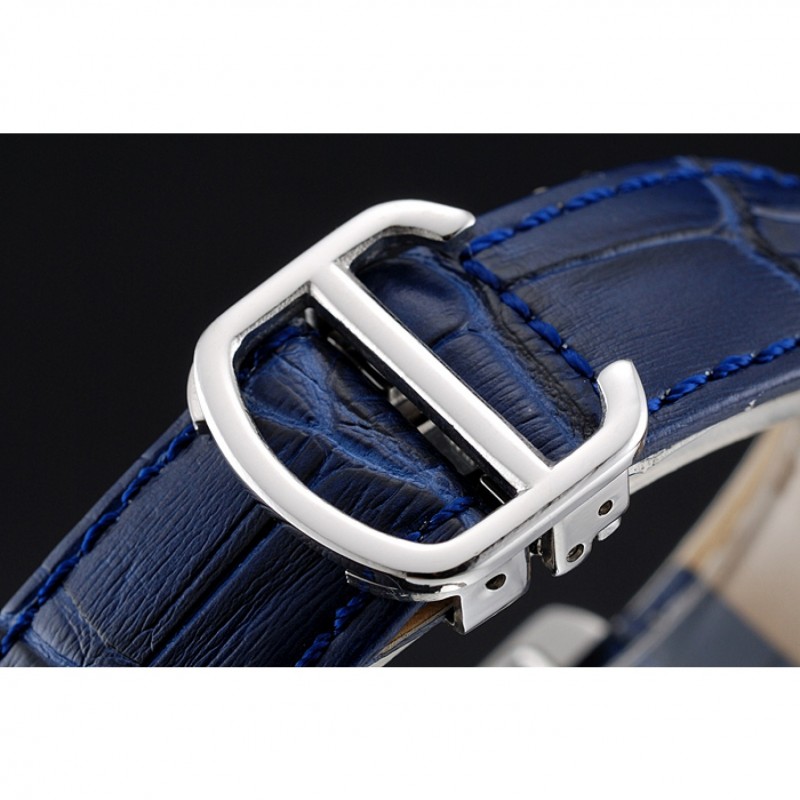 pulsera: correa de piel de cocodrilo azul calor Cartier en relieve con acero inoxidable pulido plegable en el corchete