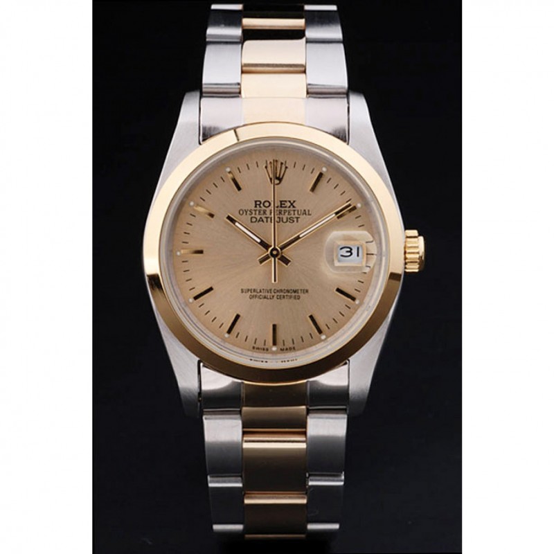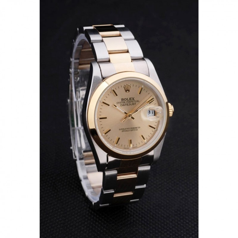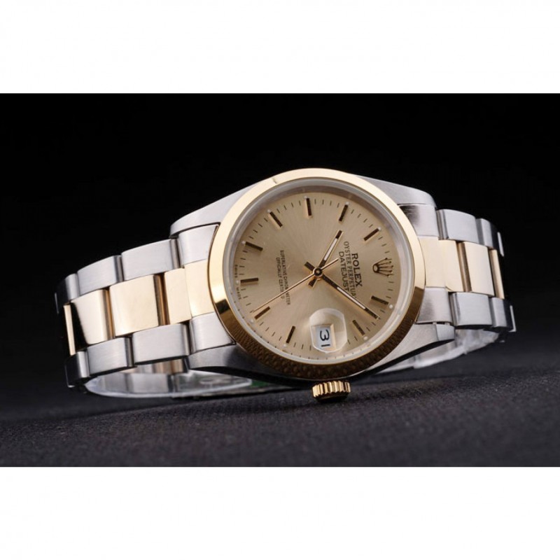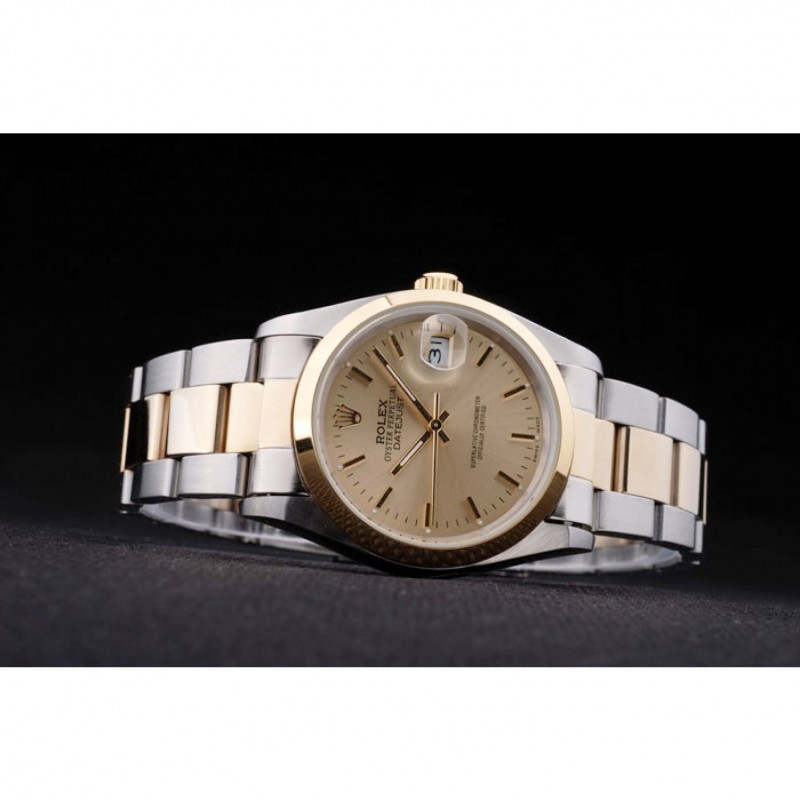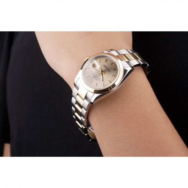 pulsera: Dos tonificado brazalete de eslabones en inoxidable cepillado acero y oro amarillo de 18K chapado en acero con el grabado Rolex plegable en cierre desplegable que muestra el logotipo de Rolex