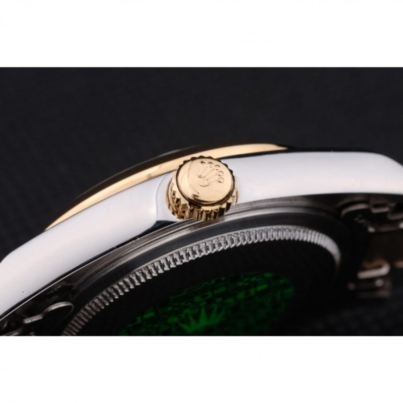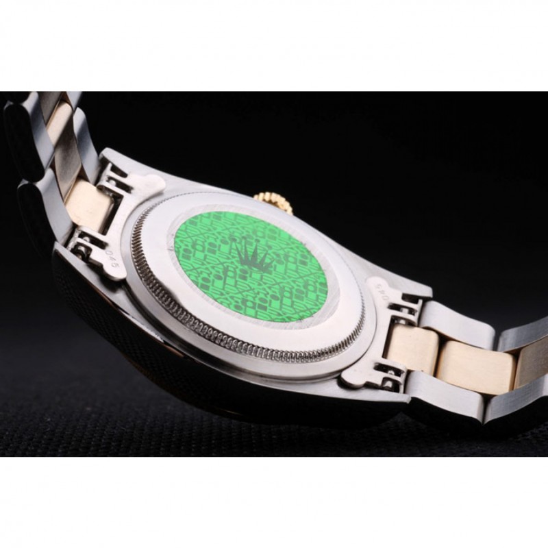 Volver: de acero inoxidable de empuje en el caso de vuelta con el logotipo verde sello Rolex