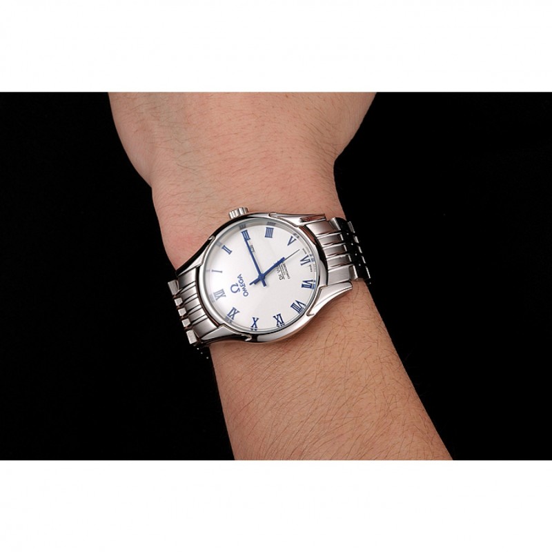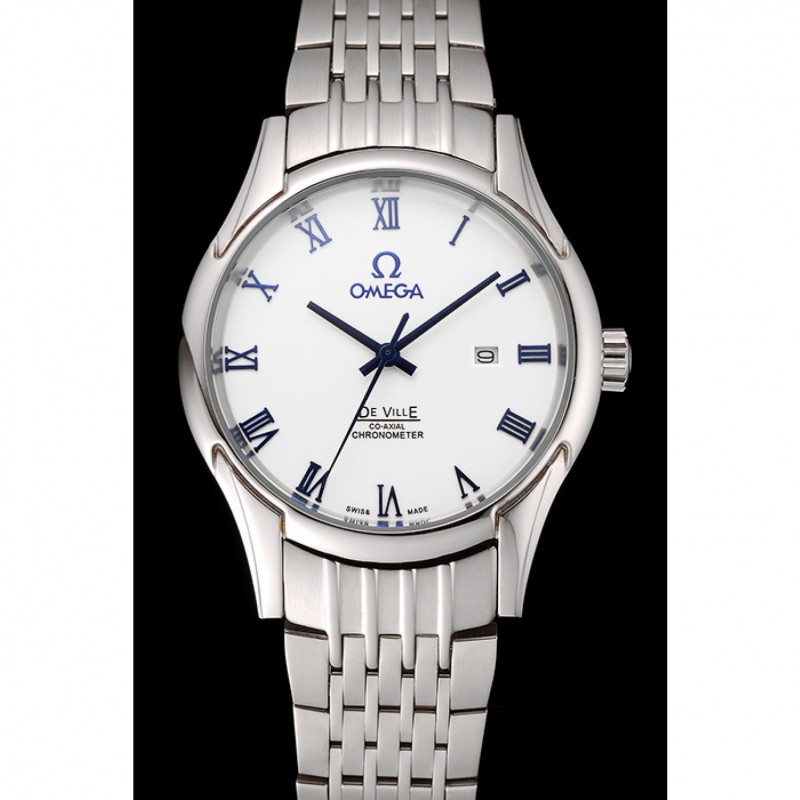 Lujo Omega De Ville esfera blanca numerales azul caja de acero inoxidable y pulsera 1453787