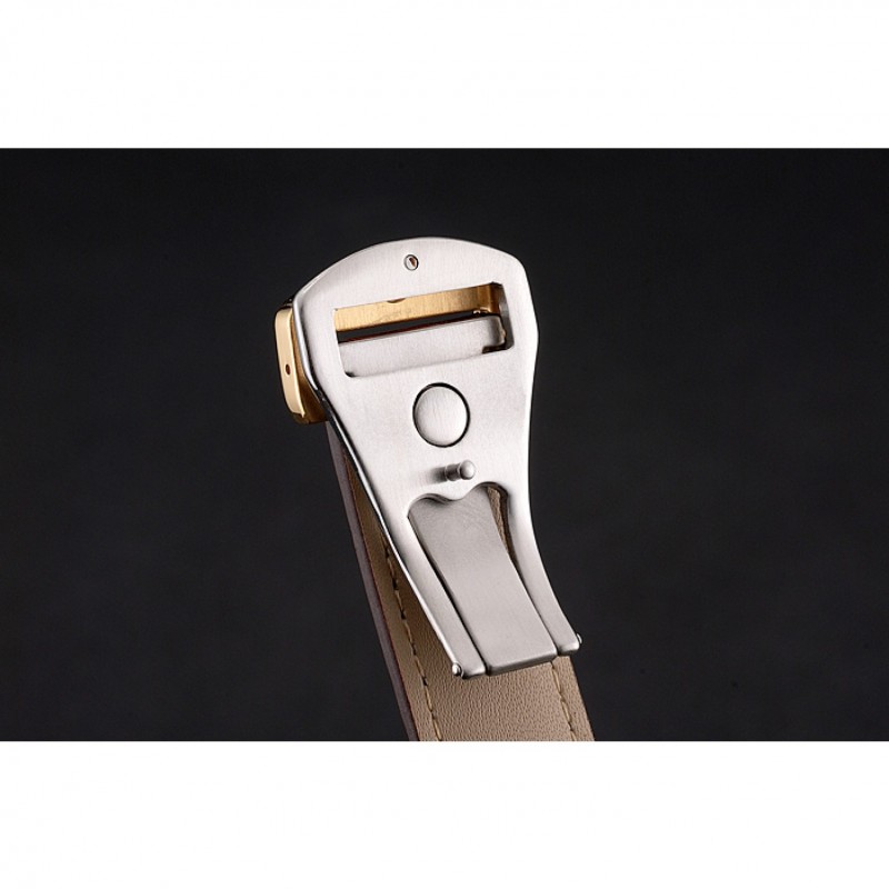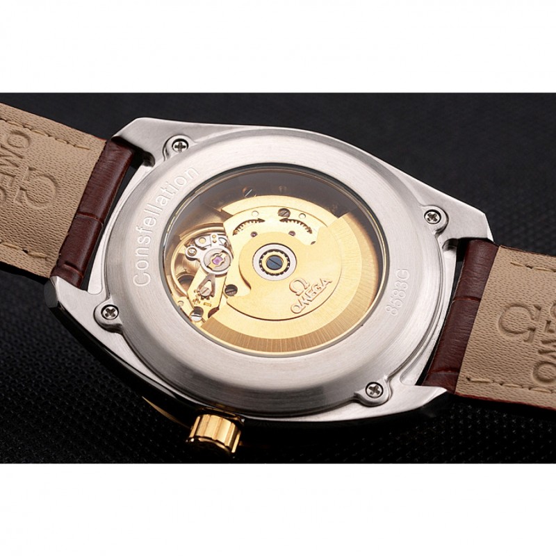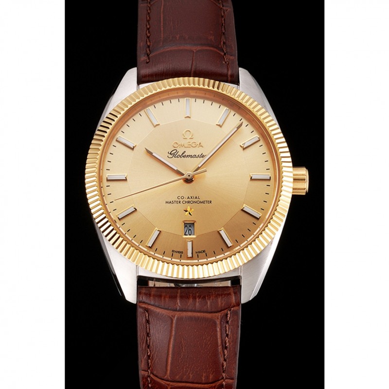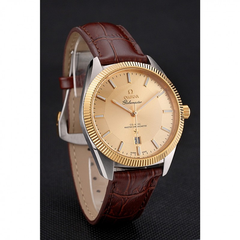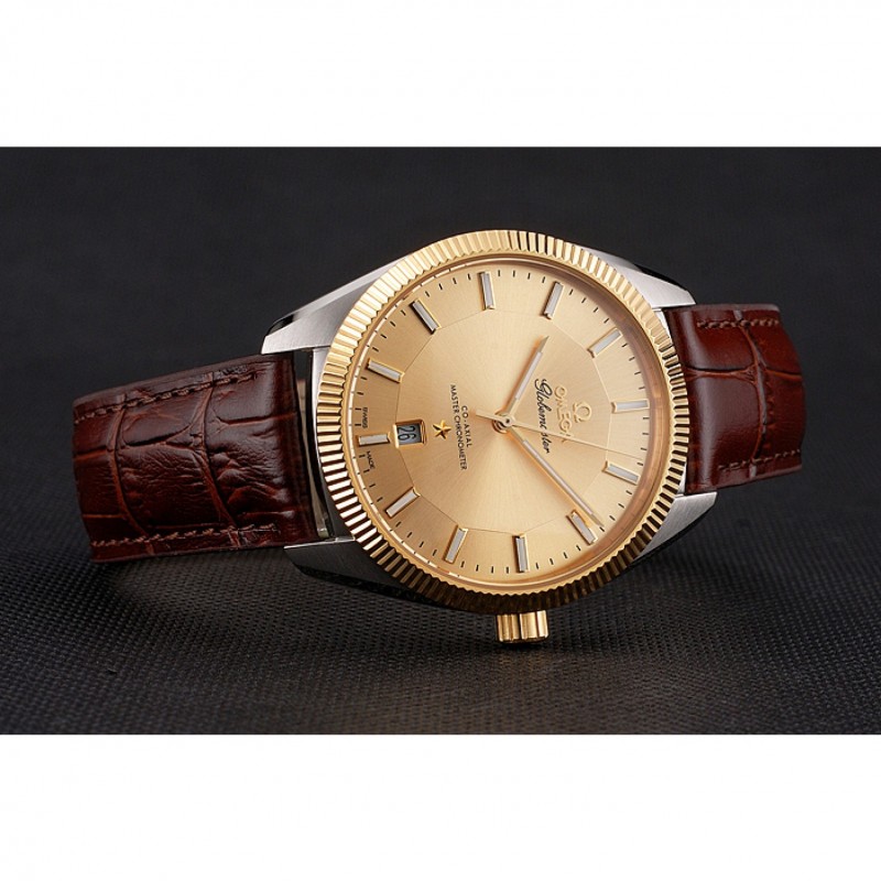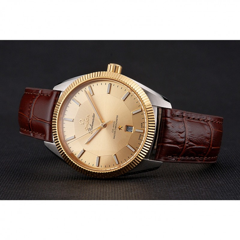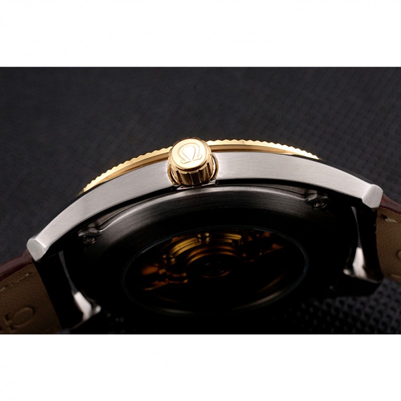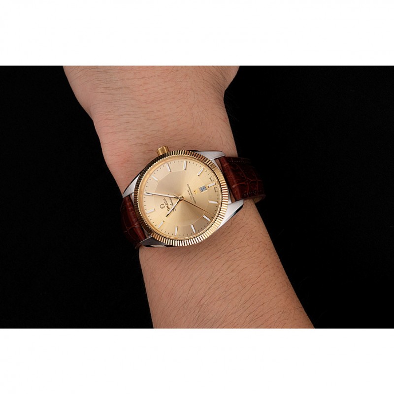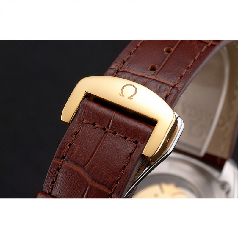 pulsera: logo y Omega correa de piel de cocodrilo marrón en relieve de calor con el logotipo inscrito 18k oro amarillo plateado gancho del corchete