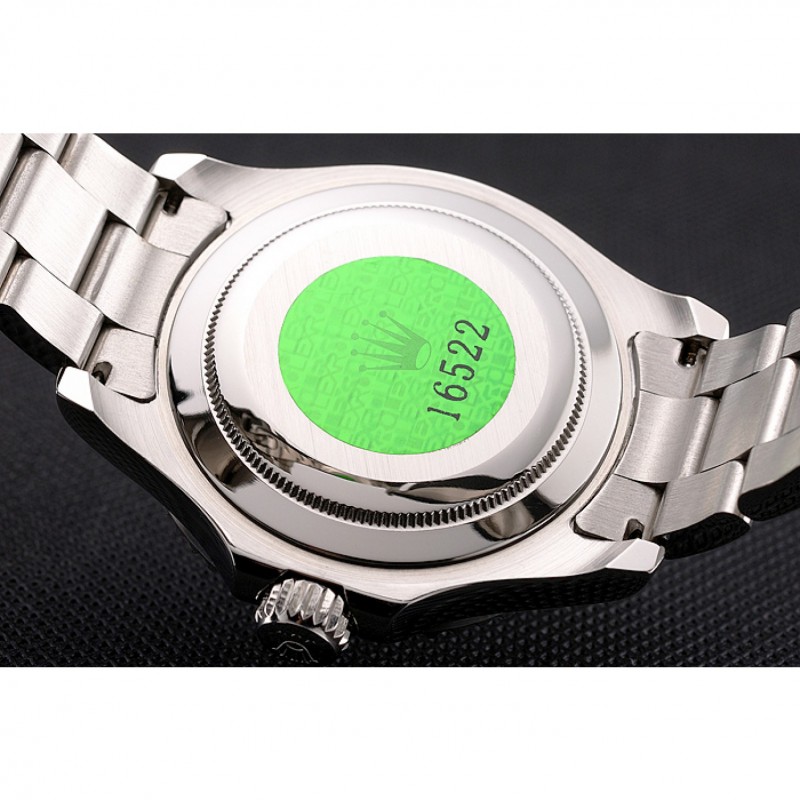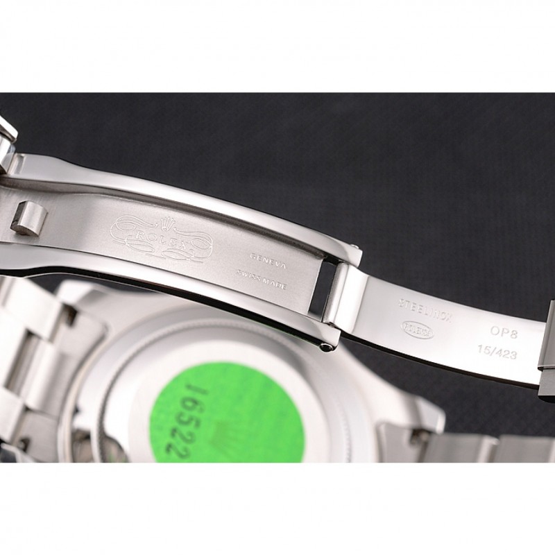 Volver: de acero inoxidable pulido snap-in de vuelta con Rolex pegatina autenticidad verde