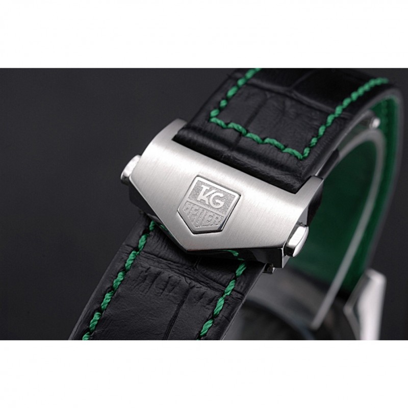pulsera:correa de piel de cocodrilo negro etiqueta de calor Heuer en relieve con Tag Heuer grabado cepillado plegable en el corchete