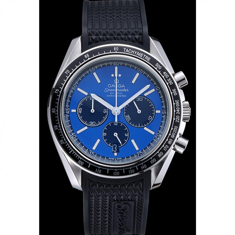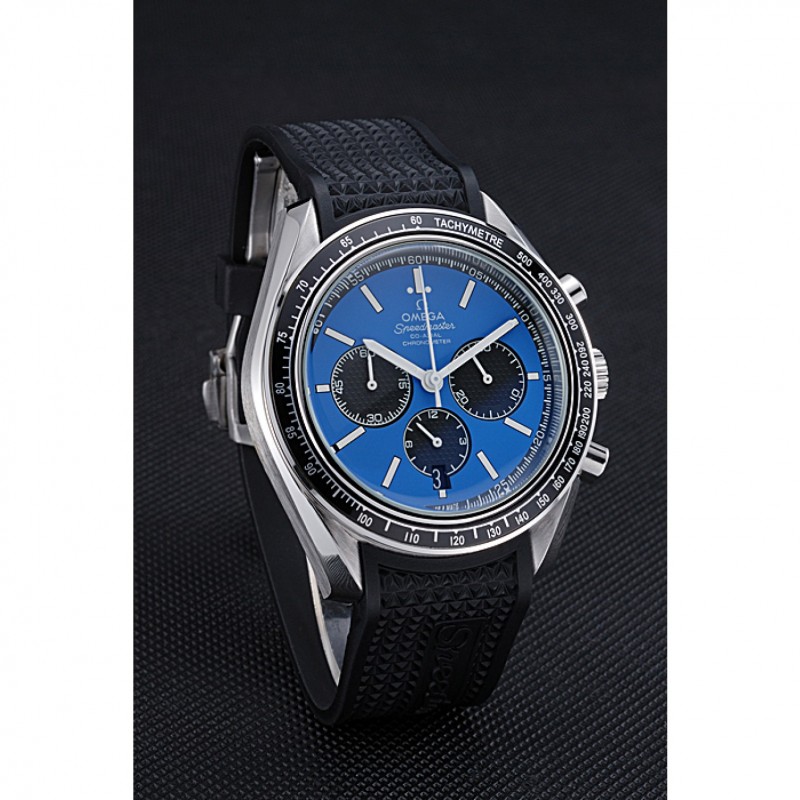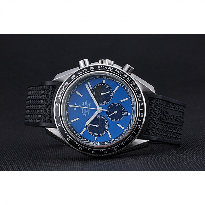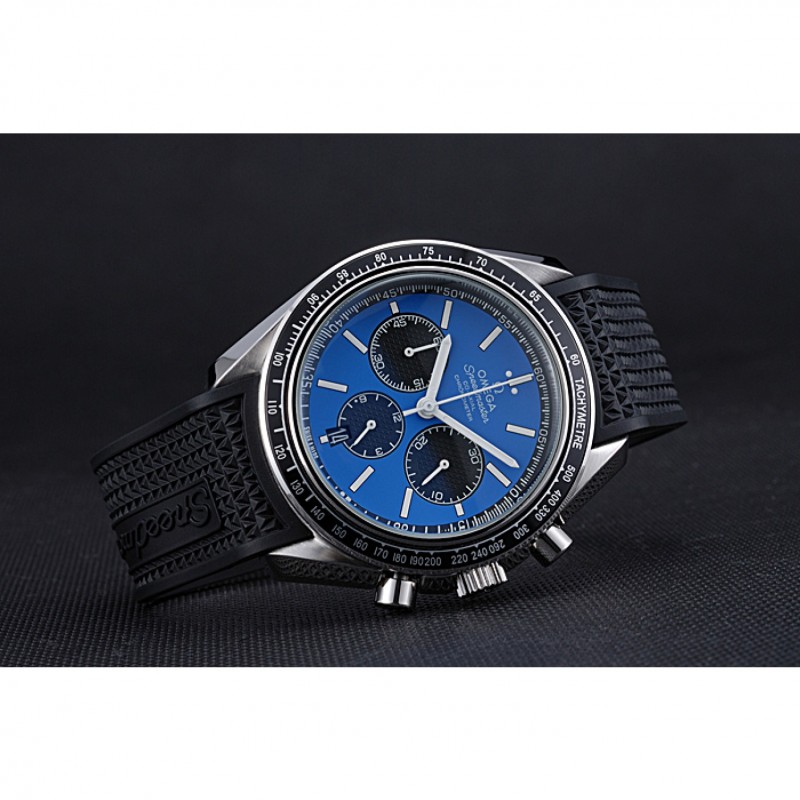 Mejor Omega Speedmaster Negro Dial correa de goma azul 622043