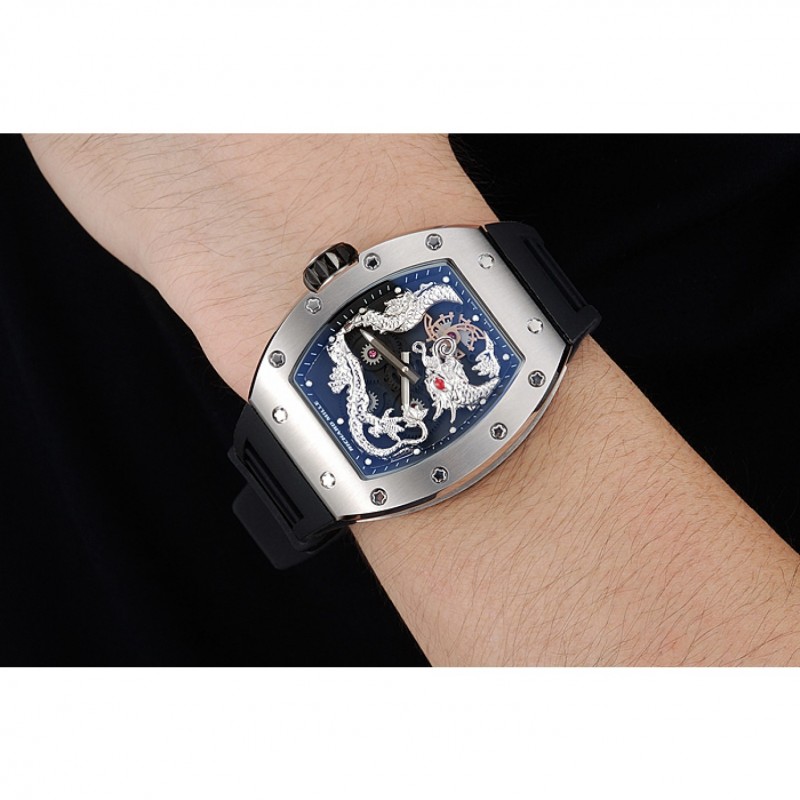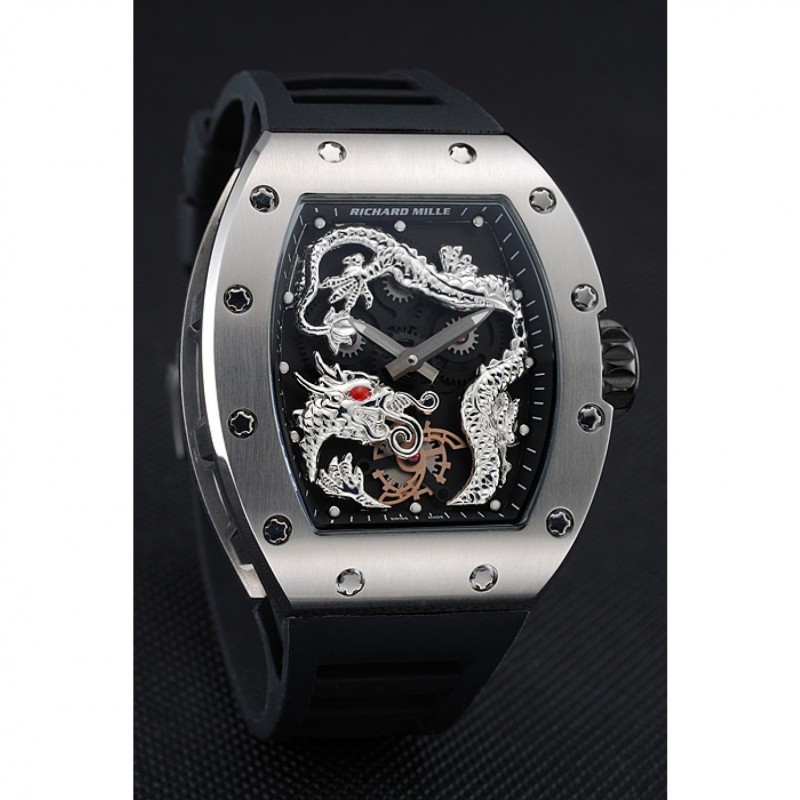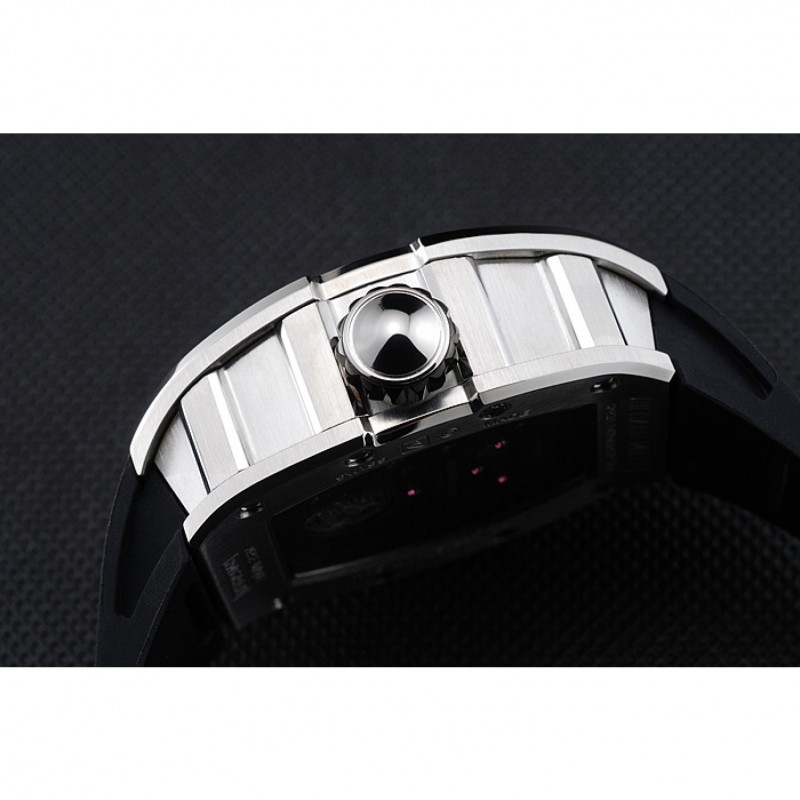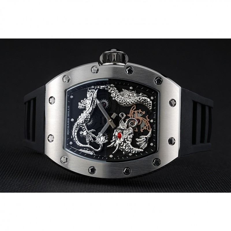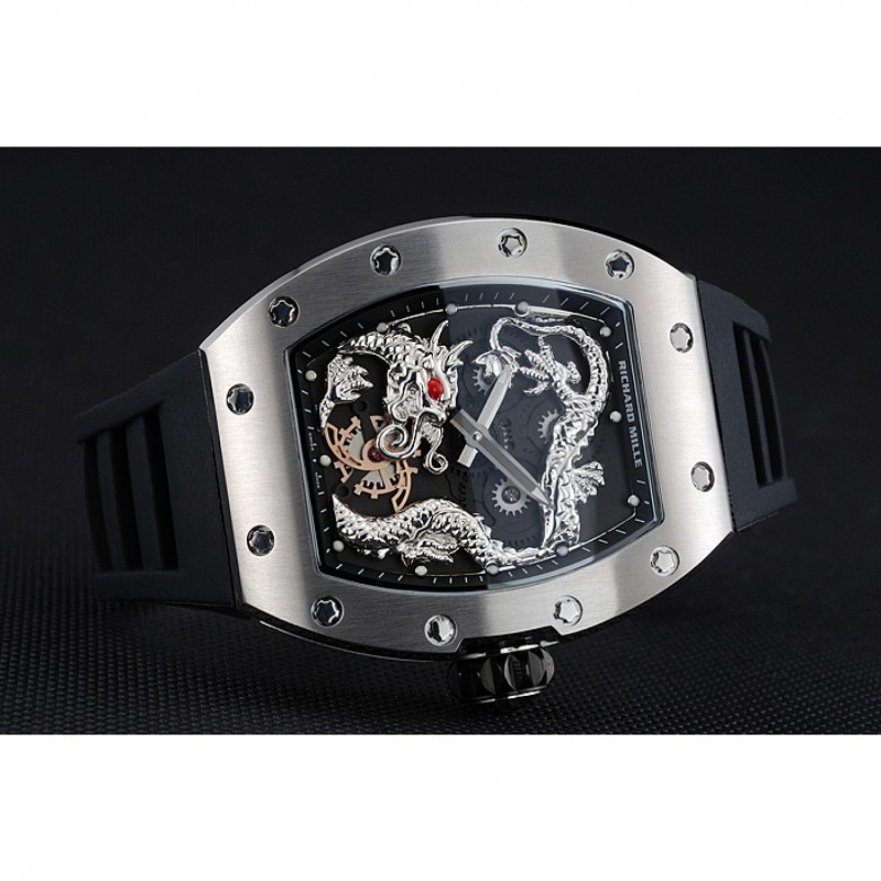 pulsera: correa de caucho negro en relieve calor Richard Mille con Richard Mille grabado acero inoxidable cepillado de gancho hebilla de cierre