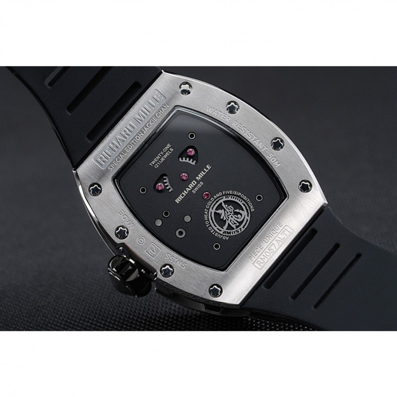 Volver: Richard Mille grabado de acero inoxidable cepillado atornillado hacia atrás con el centro de cerámica negro inscrito