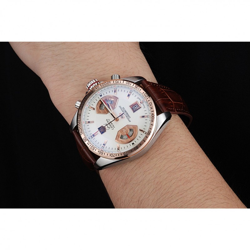 ¡Me encanta mi reloj réplica de Tag Heuer Carrera Posh 5000! La calidad del producto es excelente, con un movimiento de cuarzo japonés y una caja de acero inoxidable cepillado. El bisel chapado en oro rosa le da un toque elegante. La correa de piel de cocodrilo marrón es cómoda y con un diseño único. Además, el cronógrafo y el cristal de zafiro lo hacen aún más especial. Sin embargo, recomendaría tener cuidado con el agua, ya que el producto no es totalmente resistente al agua. ¡Muy feliz con mi compra!