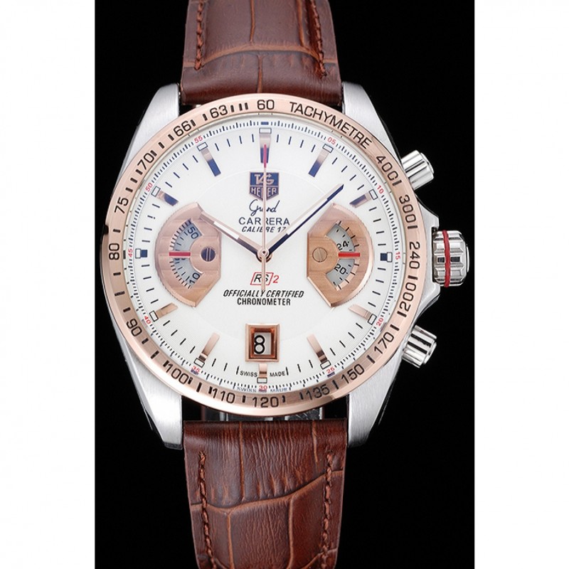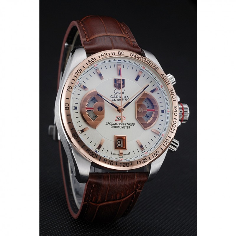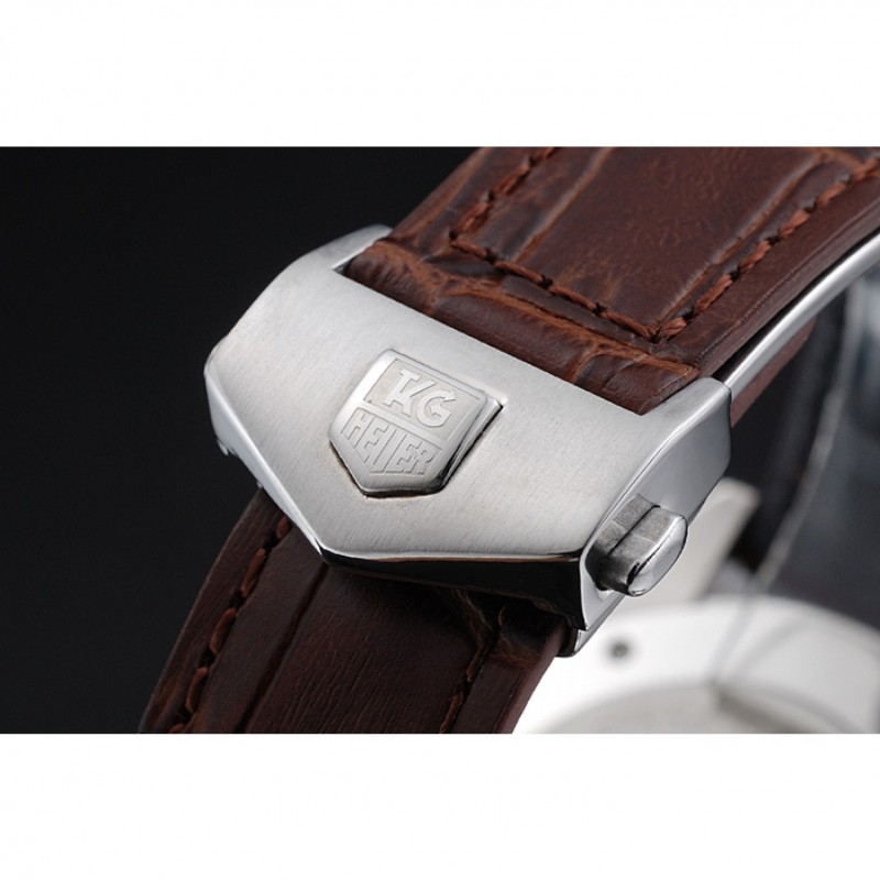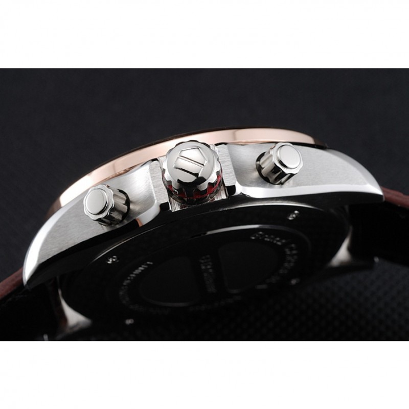 pulsera : el calor en relieve Tag correa de piel de cocodrilo marrón Heuer con pulsador de liberación de oro rosa veces por encima del corchete con la etiqueta logotipo Heuer en la parte superior