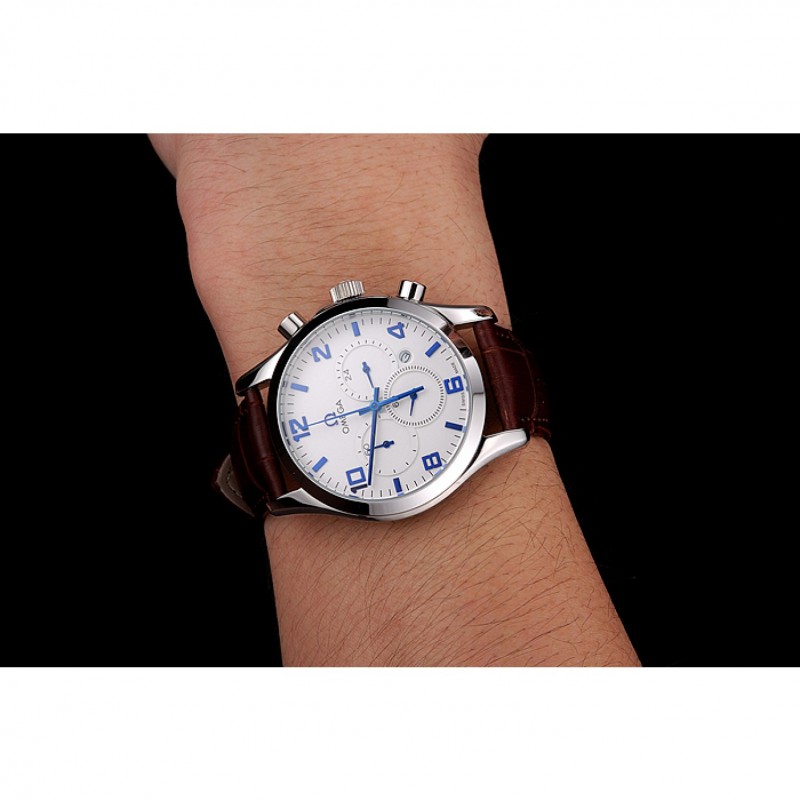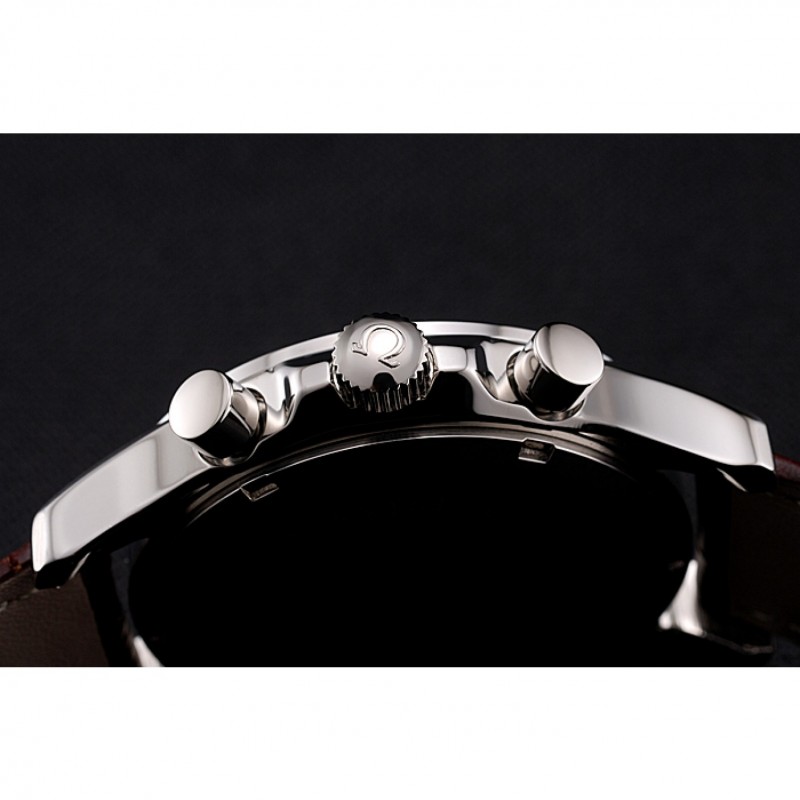 pulsera: correa de piel de cocodrilo marrón Omega y logotipo en relieve de calor con logo Omega tallada de acero inoxidable pulido de gancho hebilla de cierre