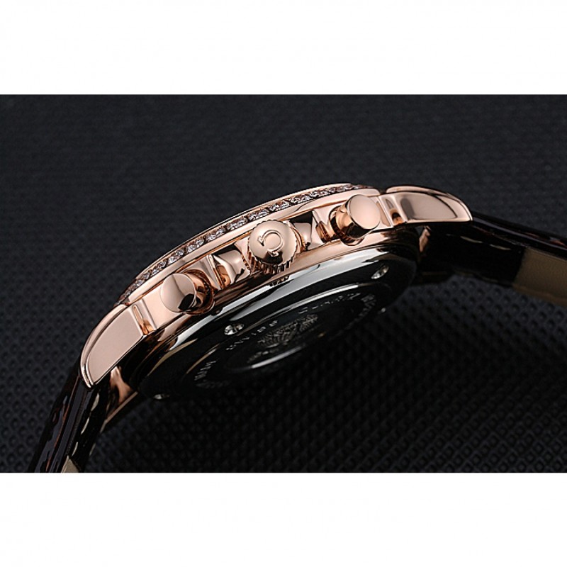 corona:corona18k logo Omega grabado de oro rosa con una ronda corona pulsador a cada lado de ella