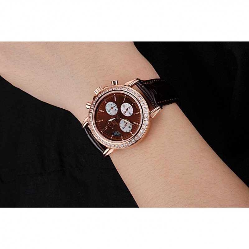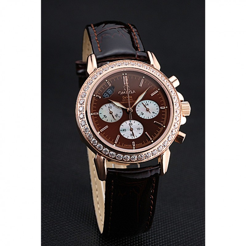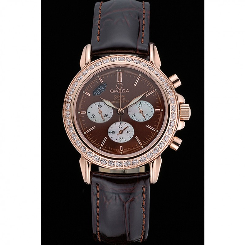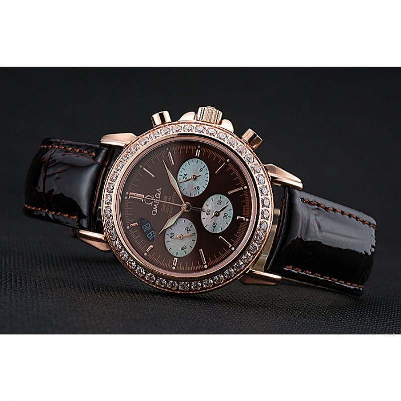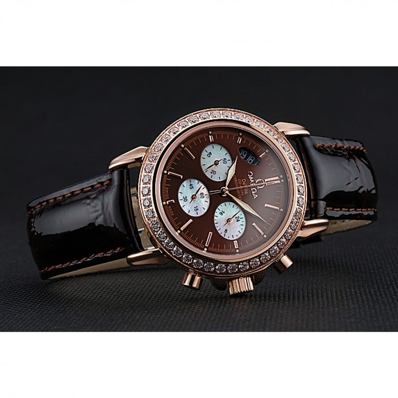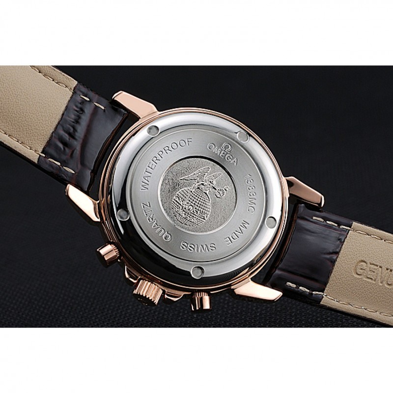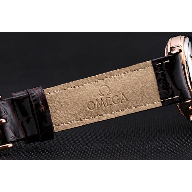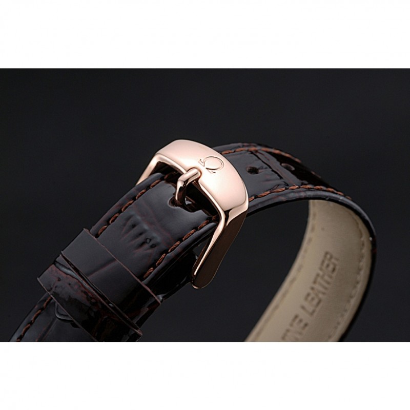 pulsera: Omega y el logo característico de la correa de cuero de patente de cocodrilo marrón en relieve con el logotipo de 18k grabado de oro rosa plateado gancho hebilla de cierre