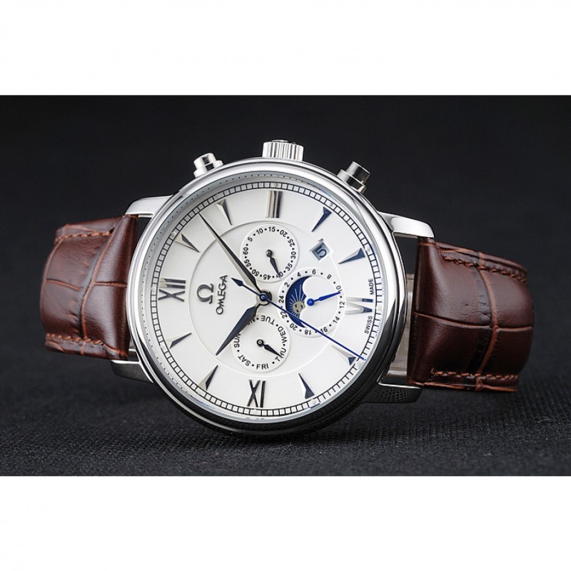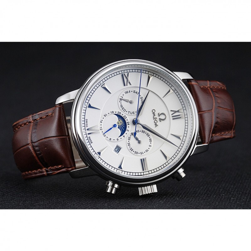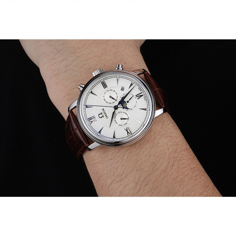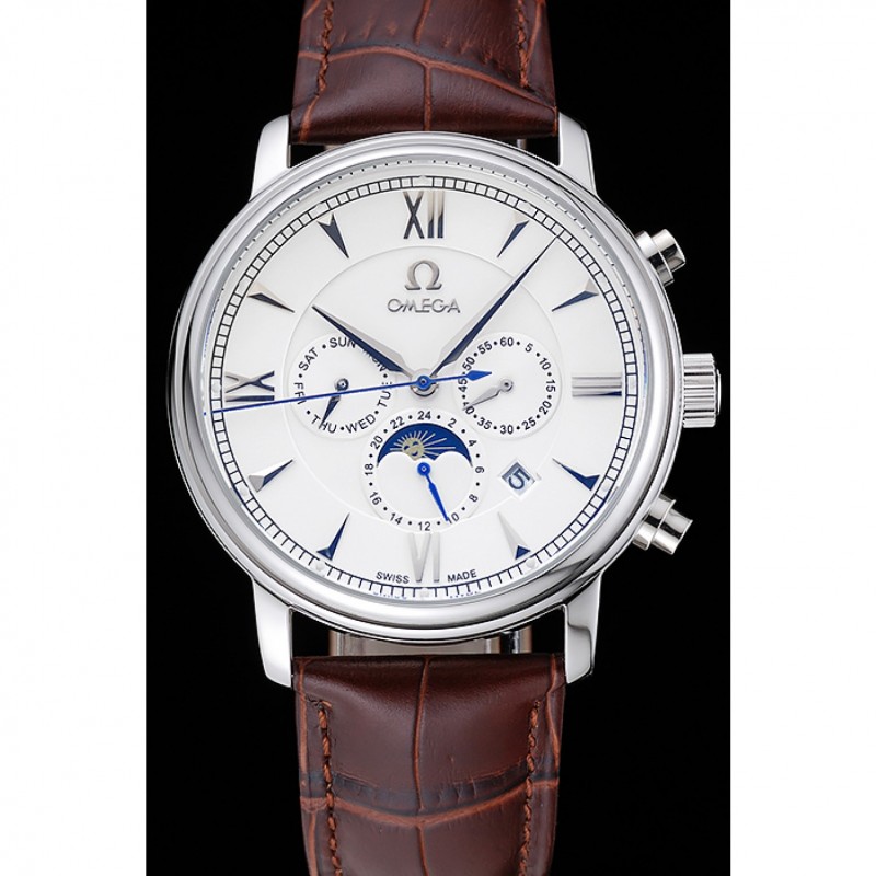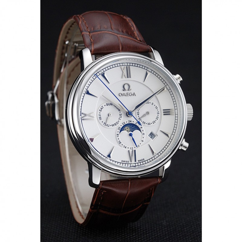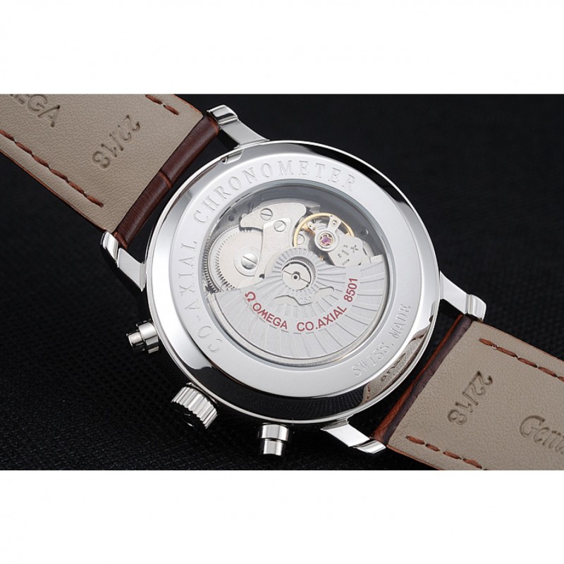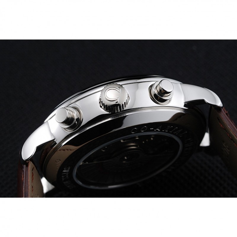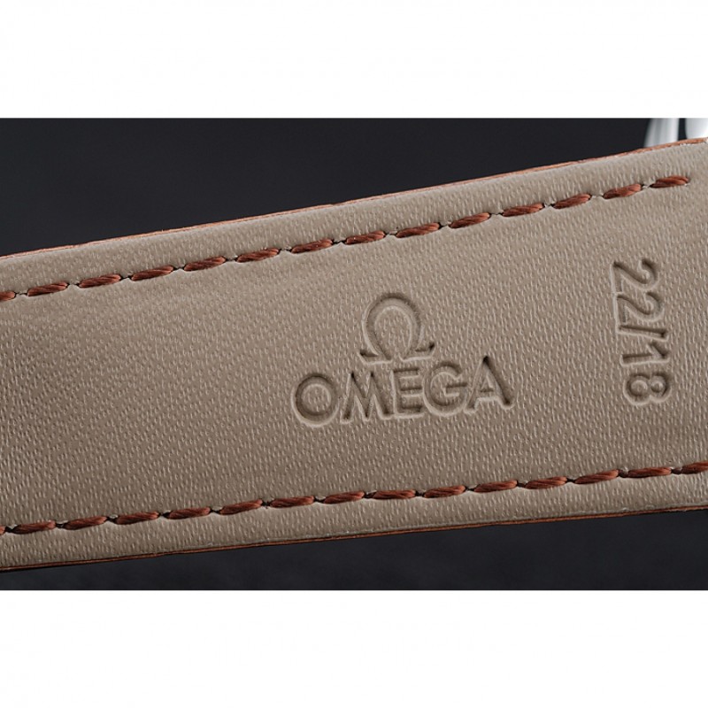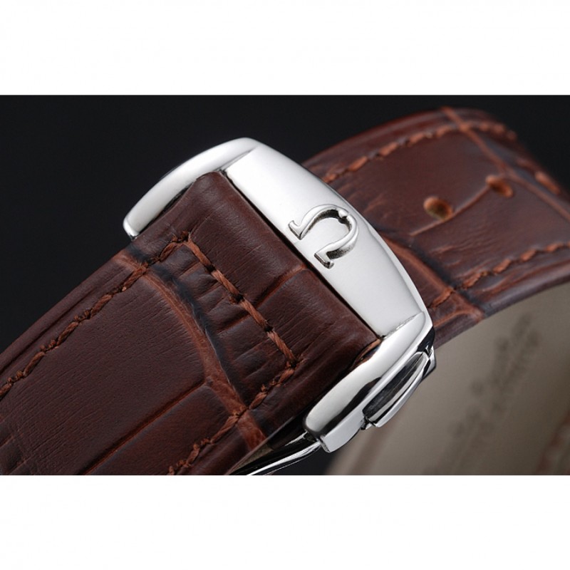 pulsera: correa de piel de cocodrilo marrón Omega y el logotipo en relieve de calor con el logotipo de Omega grabado de acero inoxidable pulido hebilla de apertura de empuje del corchete