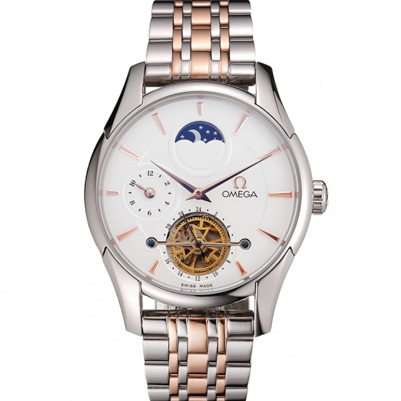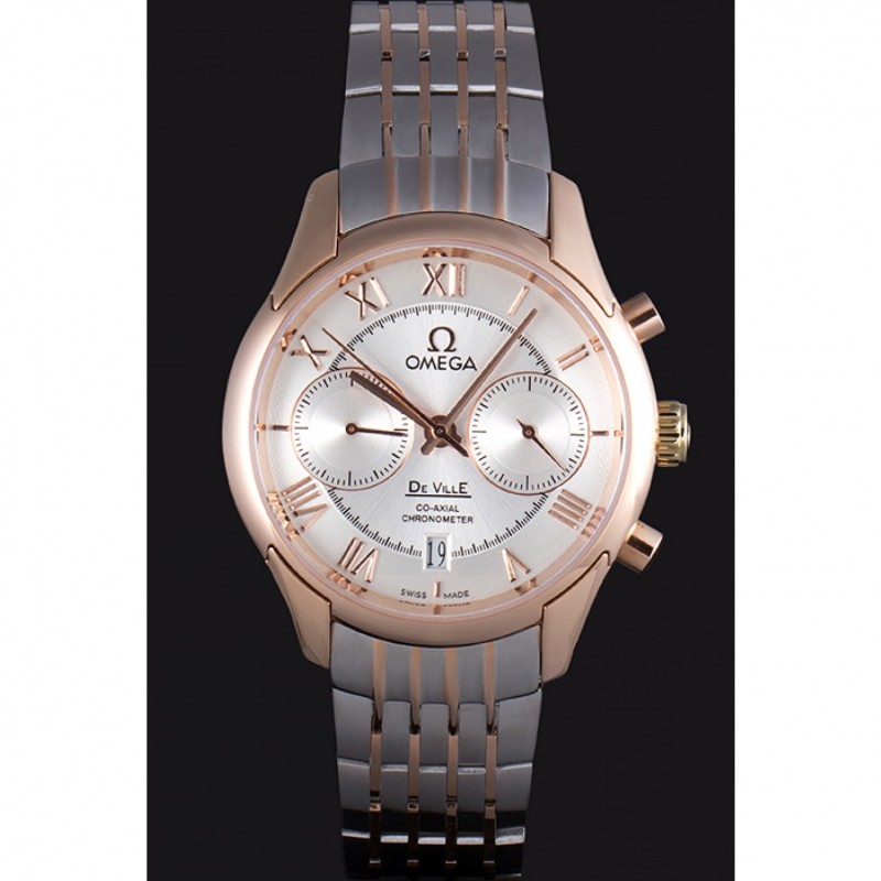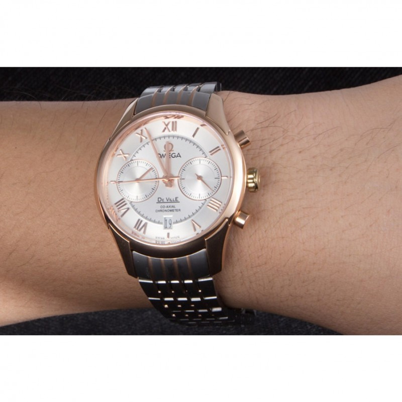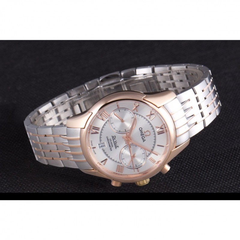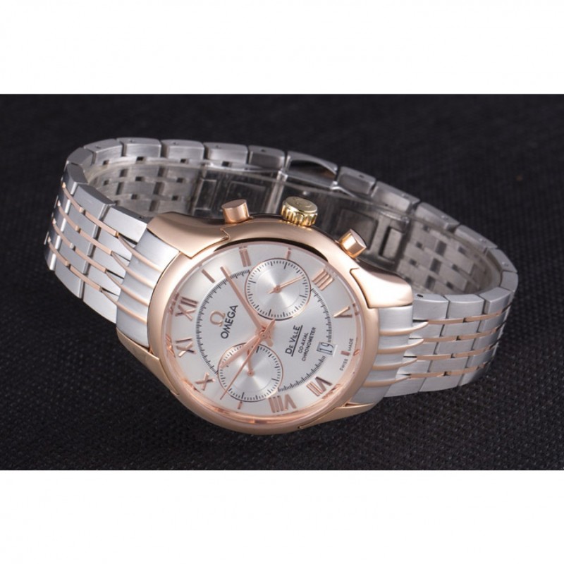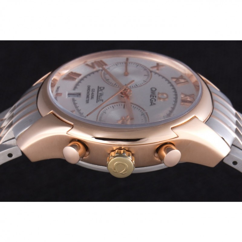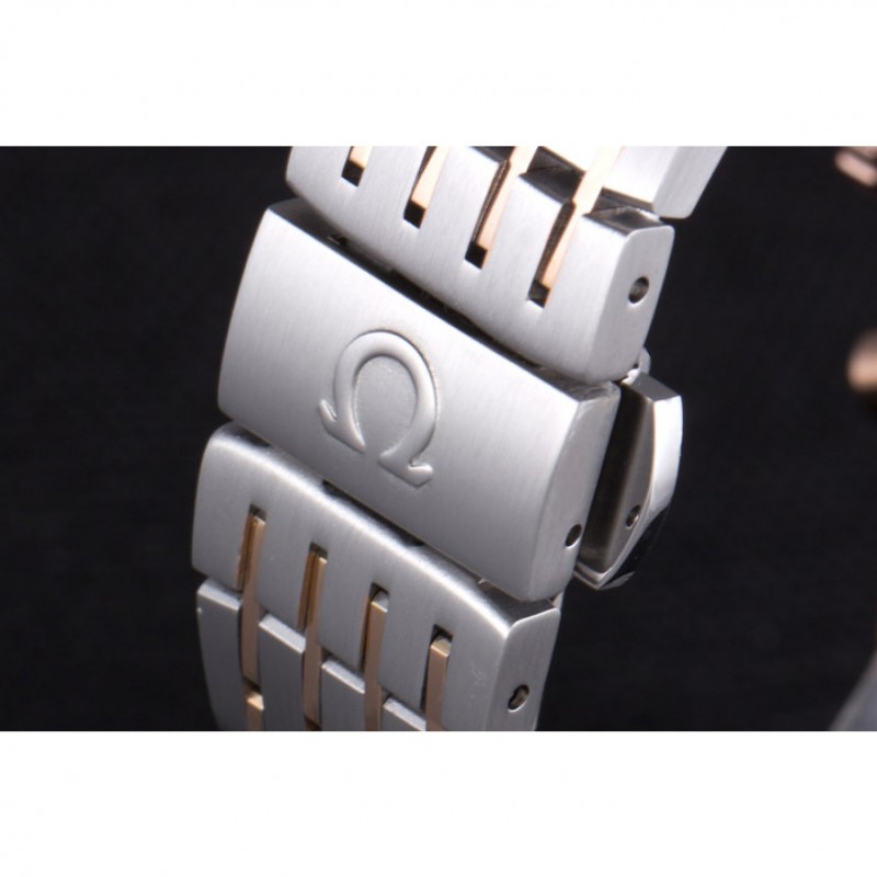 pulsera: cepillado y rosa de 18 quilates chapado en oro brazalete de eslabones con el logotipo de Omega-liberación empuje grabado broche