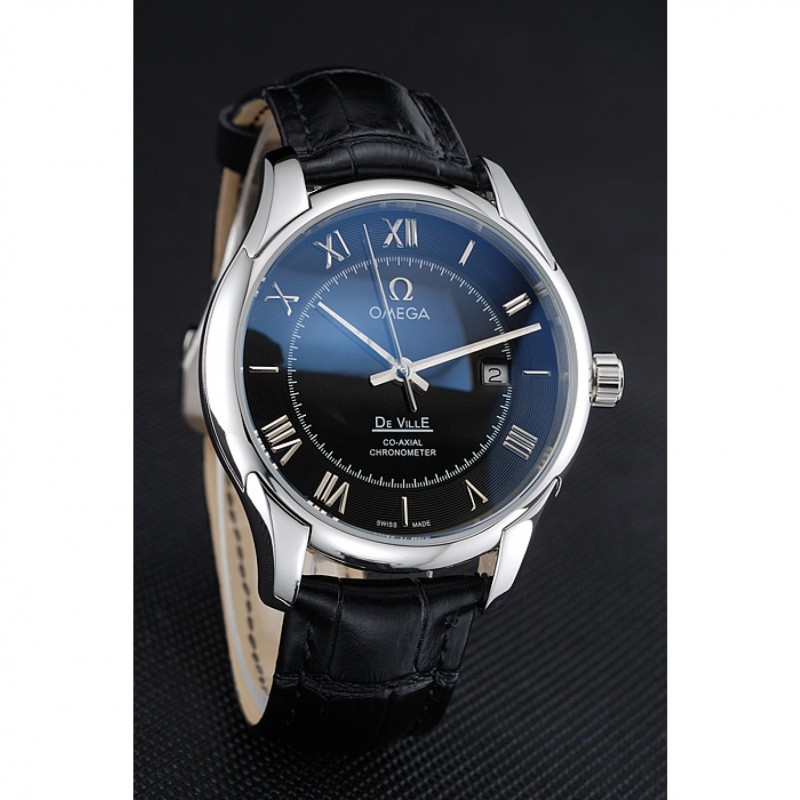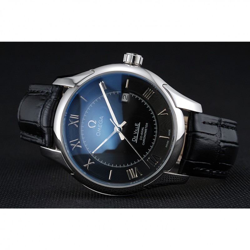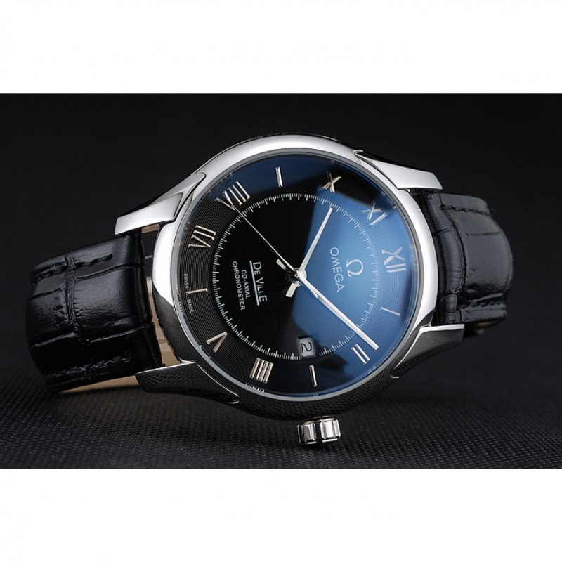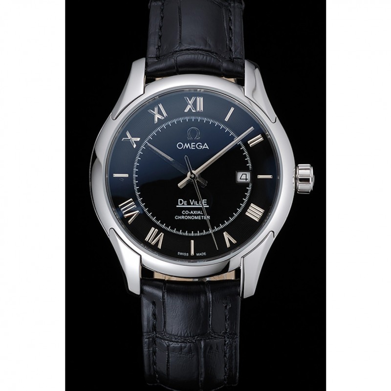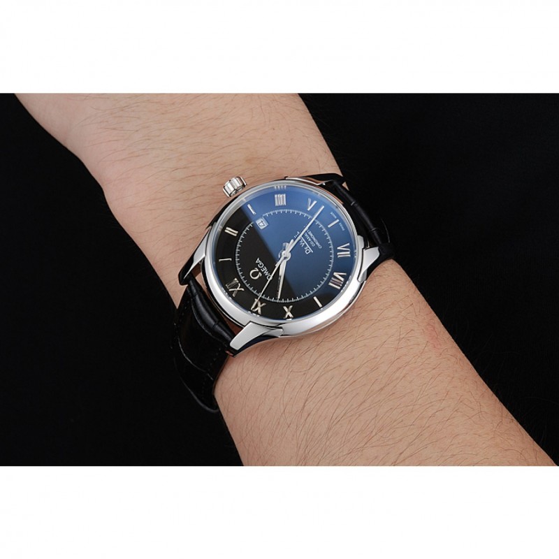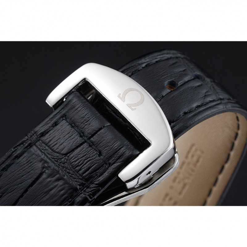pulsera:logo y el calor Omega en relieve de cocodrilo negro con el logo grabado pulida de acero inoxidable gancho de liberación empuje del corchete