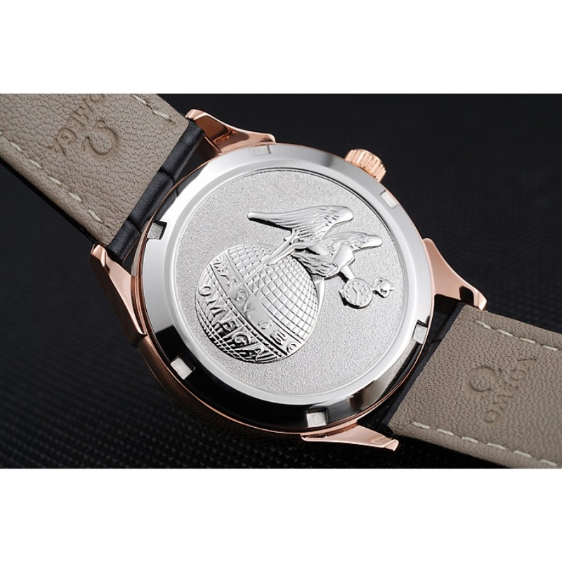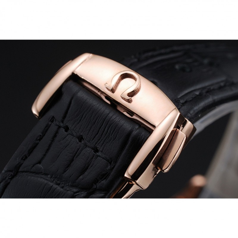 pulsera: relieve Omega y el logotipo de calor correa de piel de cocodrilo negro con el logotipo de Omega grabado 18k oro amarillo plateado empuje de liberación del gancho del corchete
