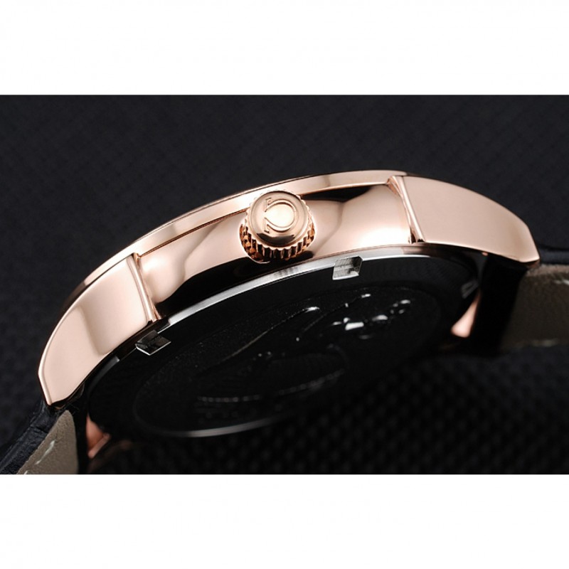 Omega DeVille Prestige Negro Dial Diamond Caja Oro Negro Pulsera de cuero 1454123