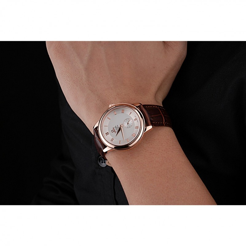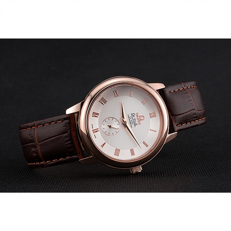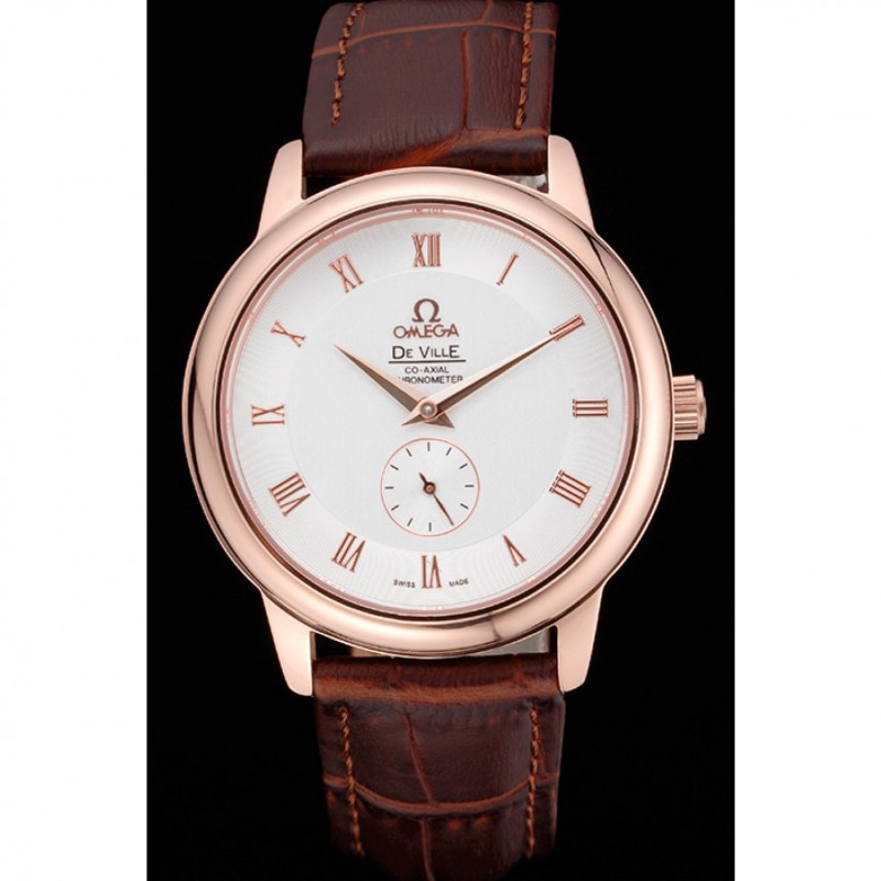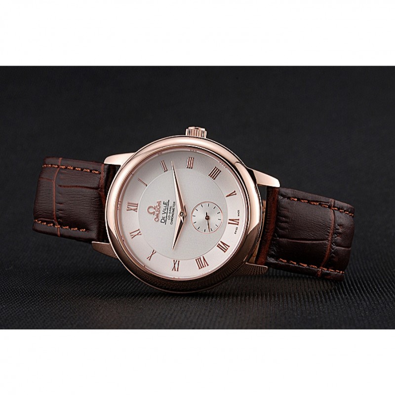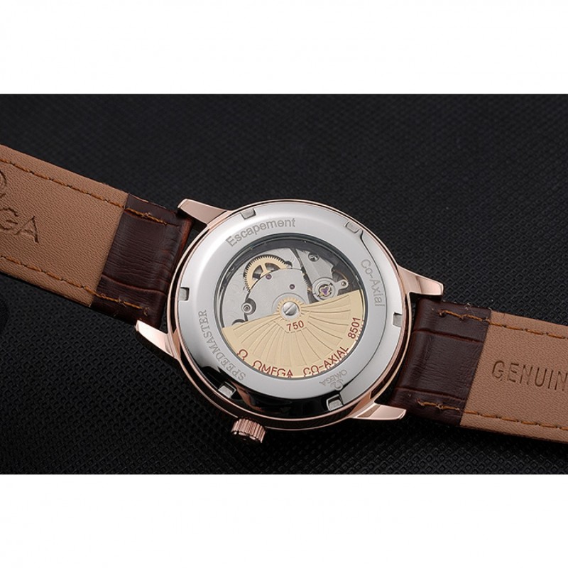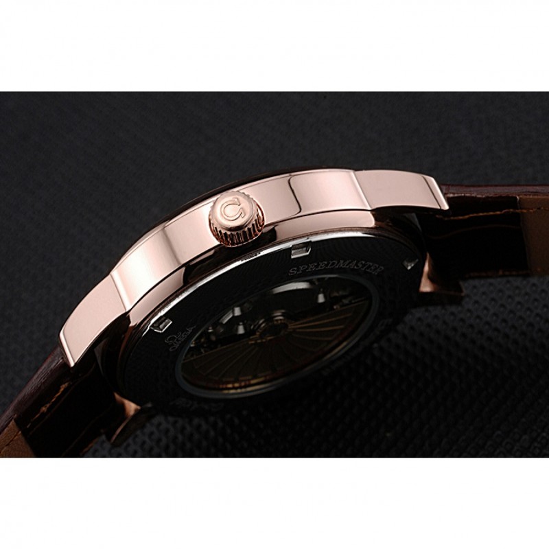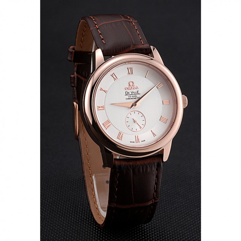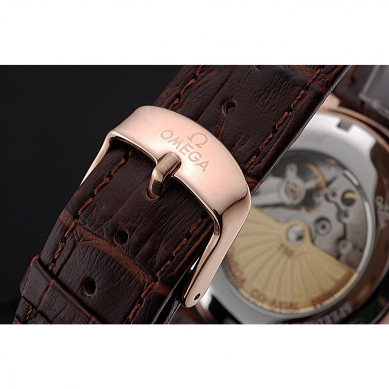pulsera: logo y el calor Omega en relieve correa de piel de cocodrilo marrón con el logotipo y Omega grabados rosa de 18 quilates chapado en oro gancho hebilla de cierre