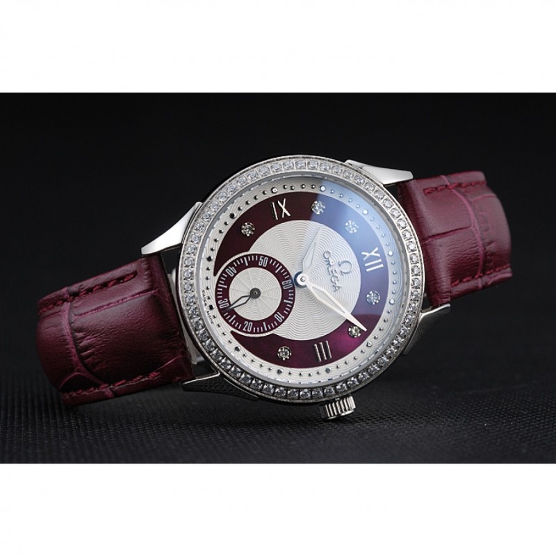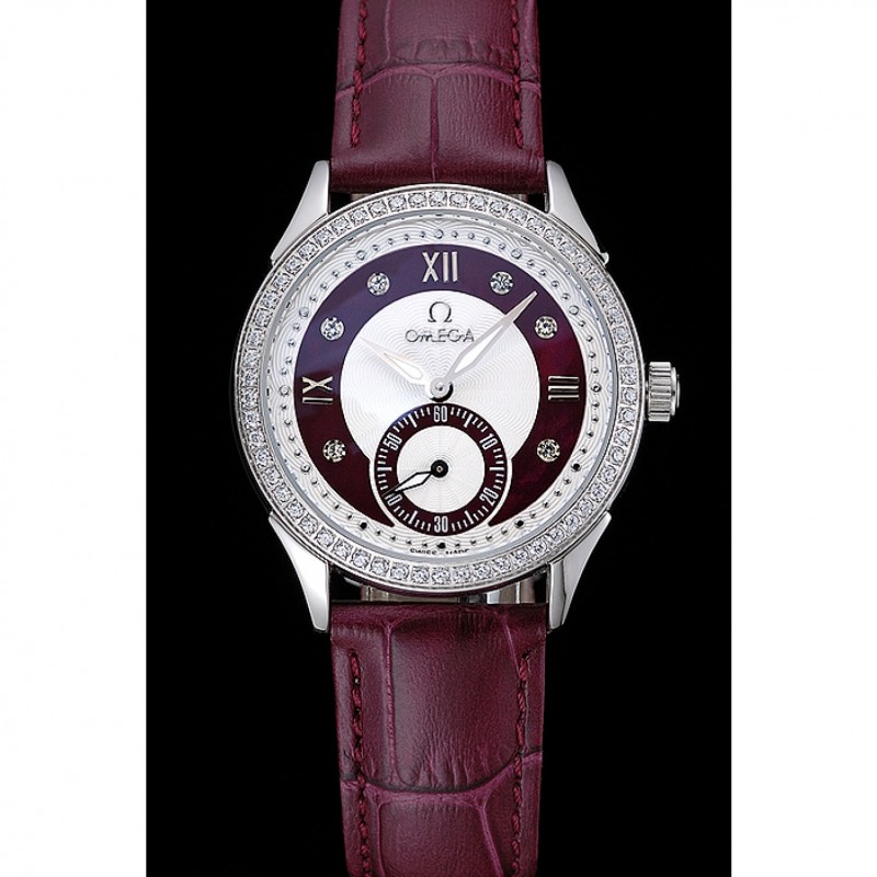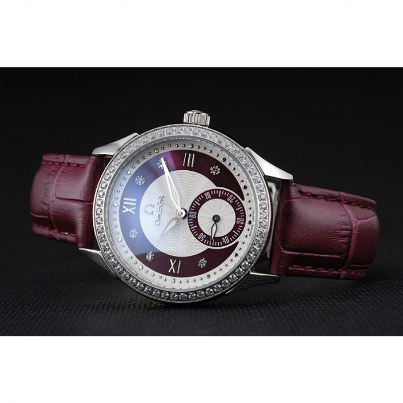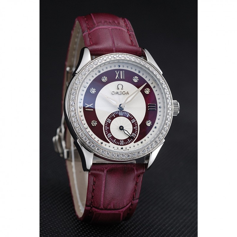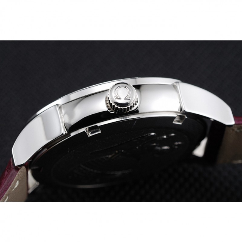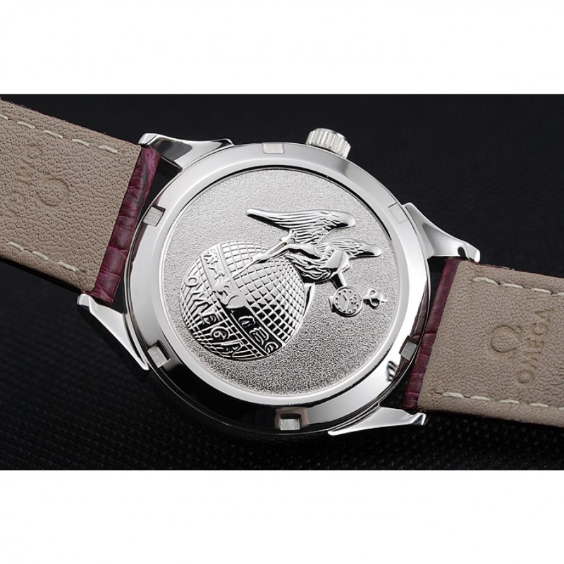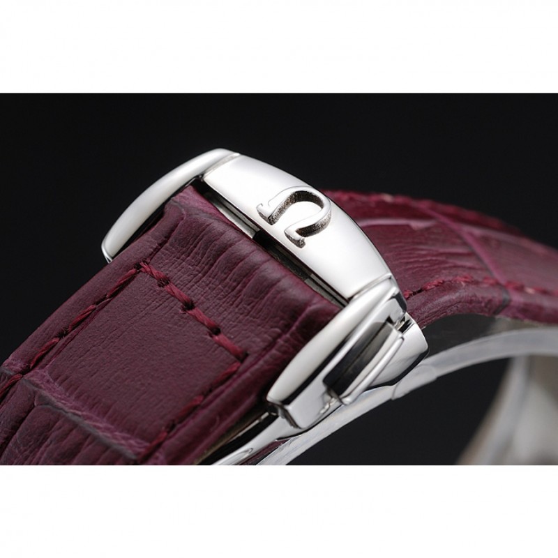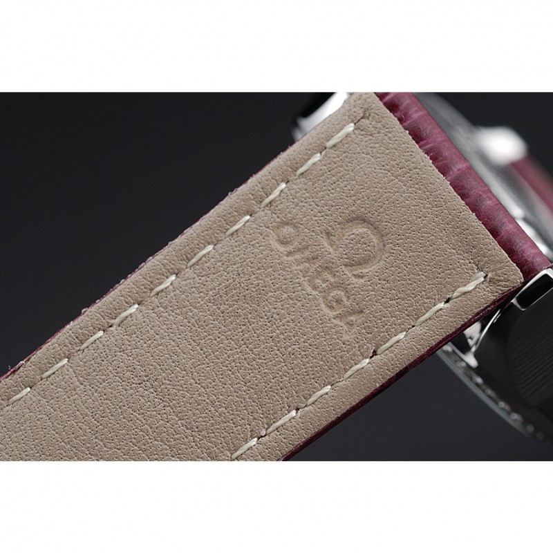 pulsera: Omega y el logotipo de calor en relieve cocodrilo rojo oscuro correa de cuero con el logo Omega grabado de acero inoxidable pulido gancho de liberación empuje del corchete