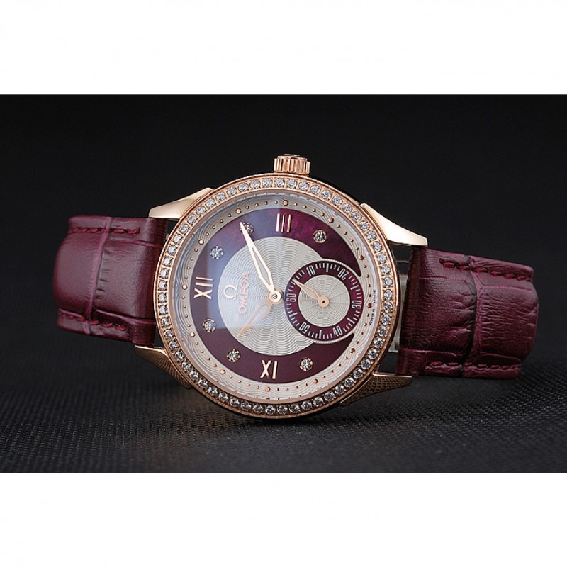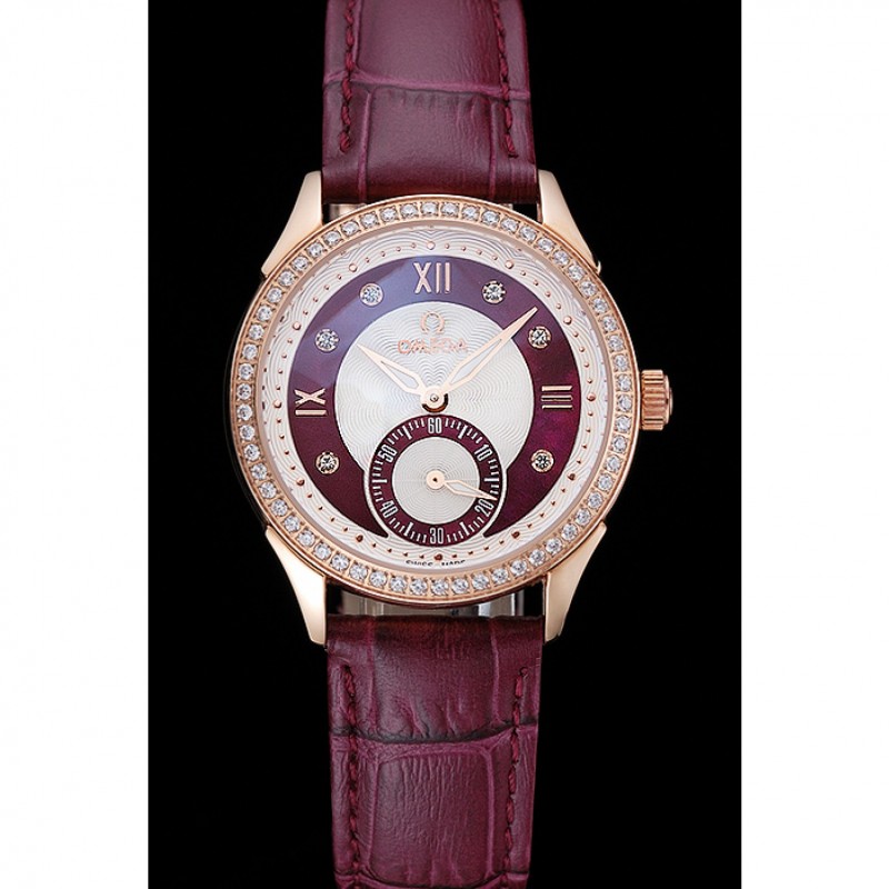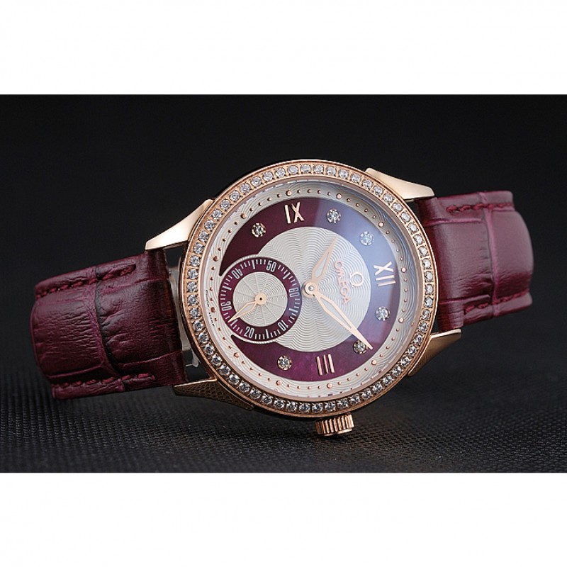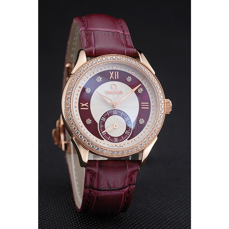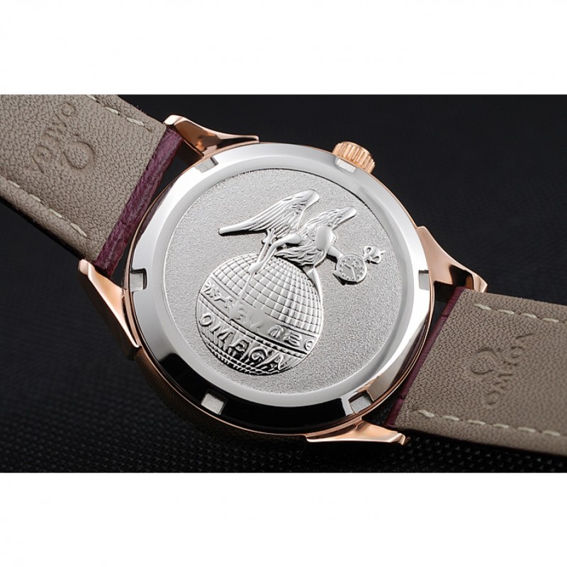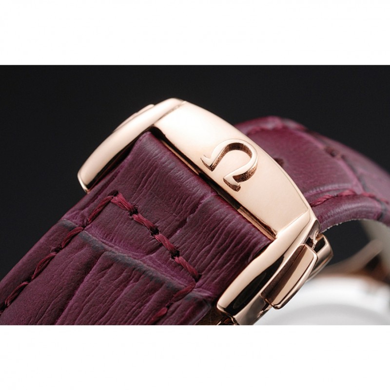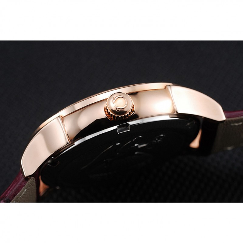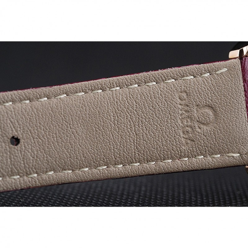 pulsera: relieve Omega y el logotipo de calor correa de piel de cocodrilo de color rojo oscuro con el logotipo de Omega grabado 18k oro amarillo plateado empuje de liberación del gancho del corchete