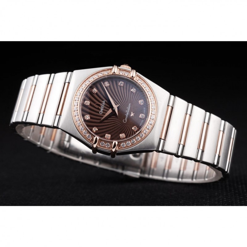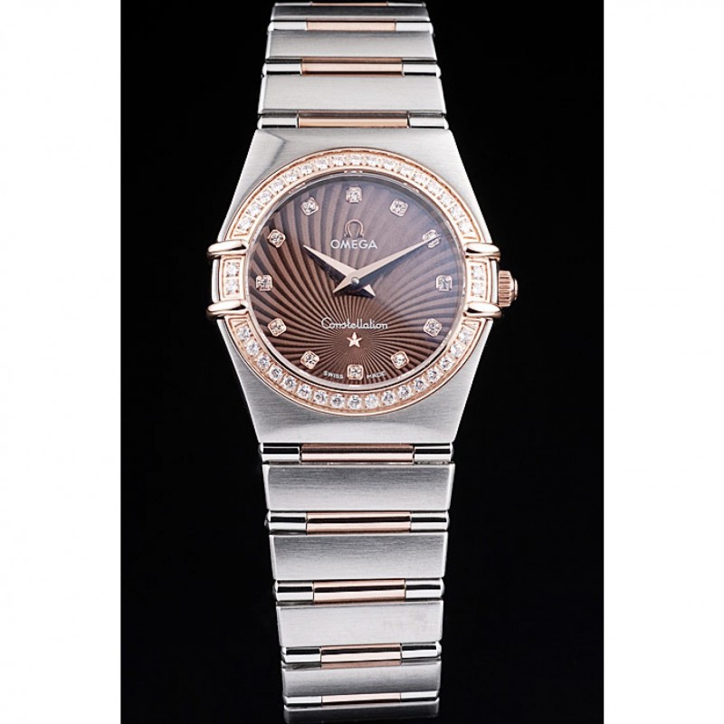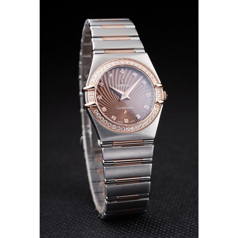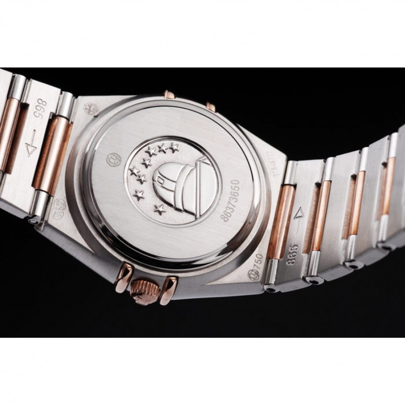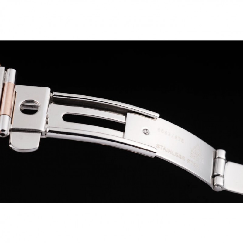 pulsera: cepillado de acero inoxidable y la cadena de acoplamiento rosa-oro pulsera con cierre oculto y el logotipo de Omega en la parte superior