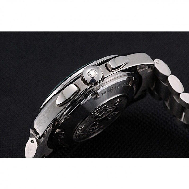 Crown: logo Omega grabado corona de acero inoxidable pulido con una corona de botón en cada lado de ella