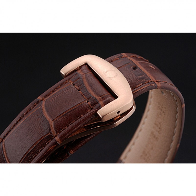 corona: rosa de 18 quilates chapado en oro corona de calado con el logotipo de Omega y una corona de pulsador a cada lado de ella