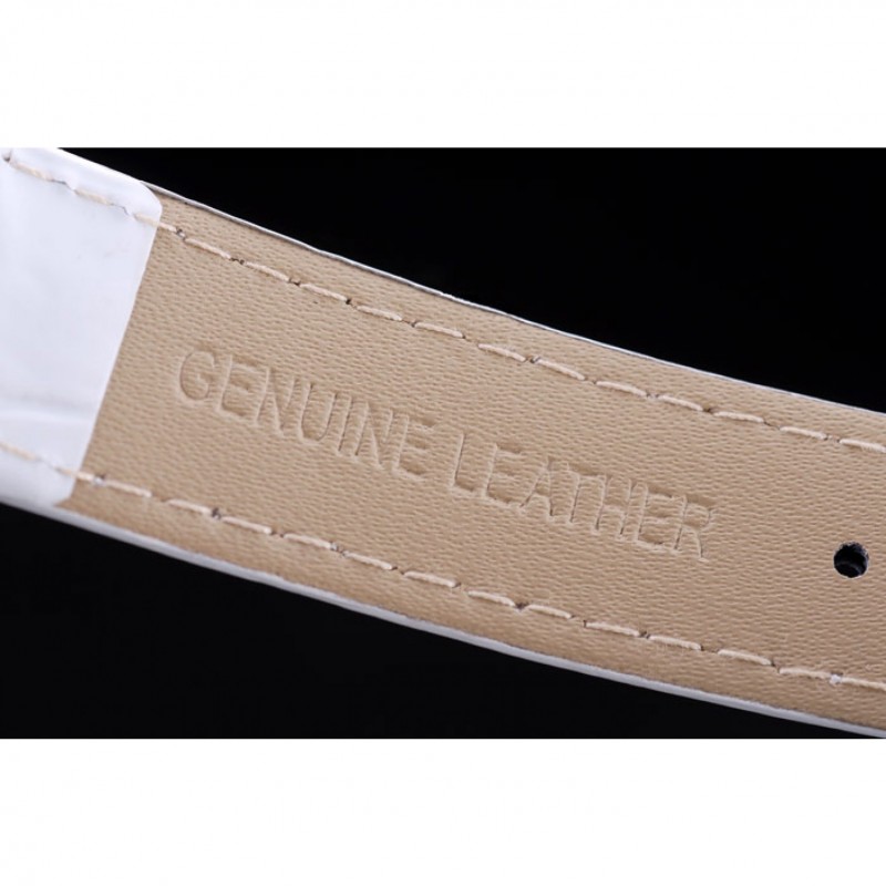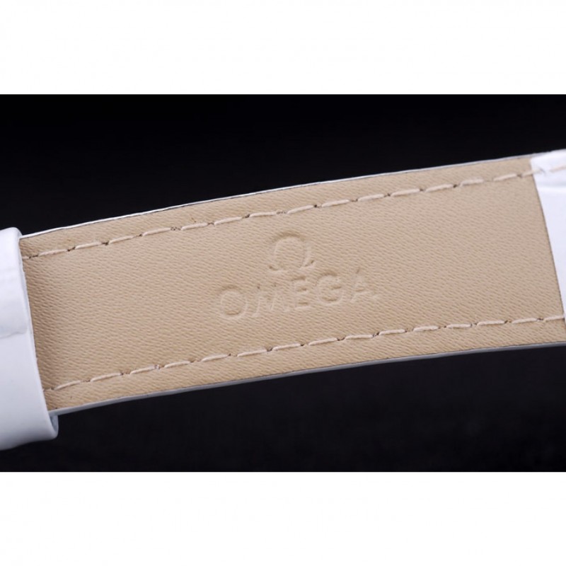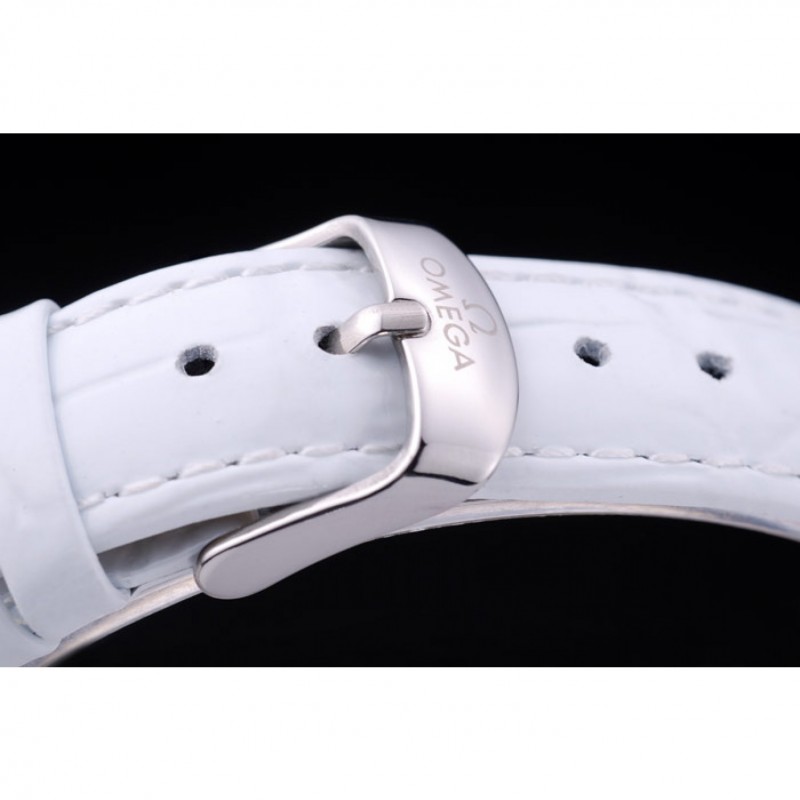 pulsera: correa de piel de cocodrilo calor Omega en relieve patente blanco con Omega inscrito de acero inoxidable pulido de gancho hebilla de cierre