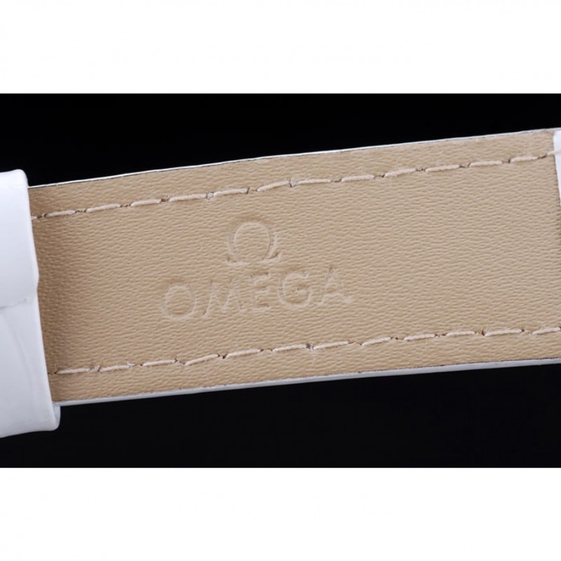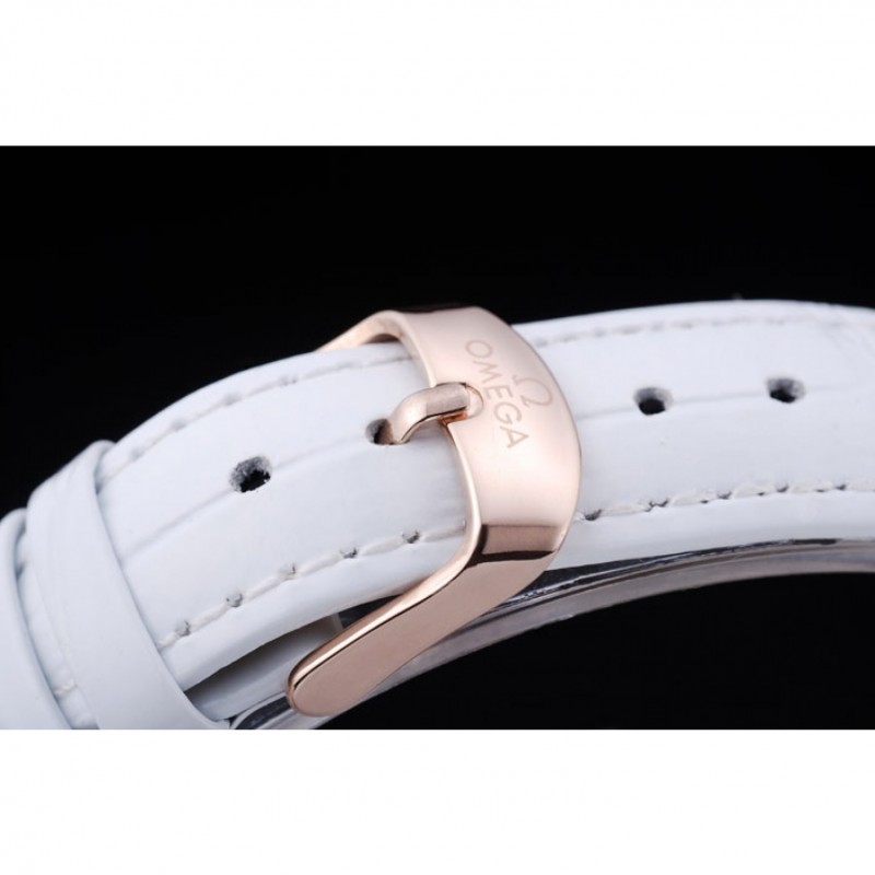 Crown: 18K rose-chapado en oro corona cutwork con logo Omega además de una corona cutwork acero inoxidable pulido con logo en el lado opuesto