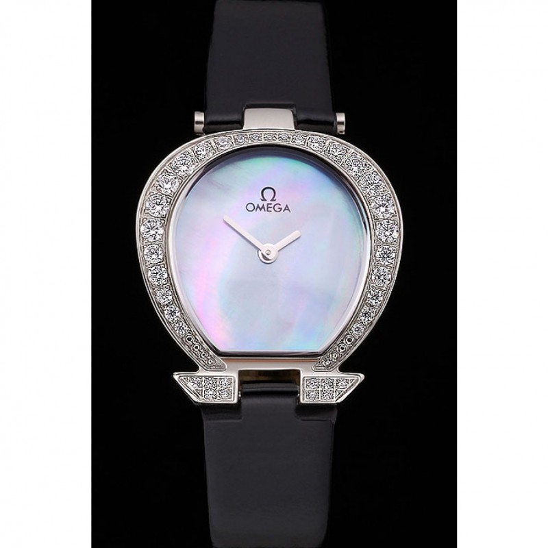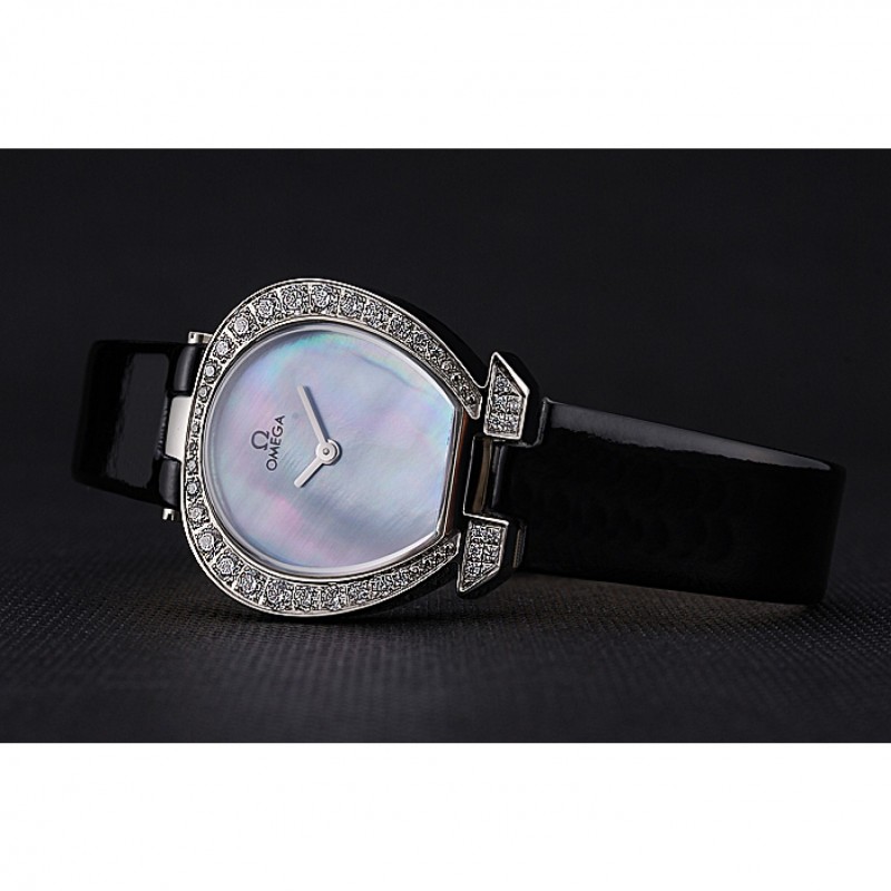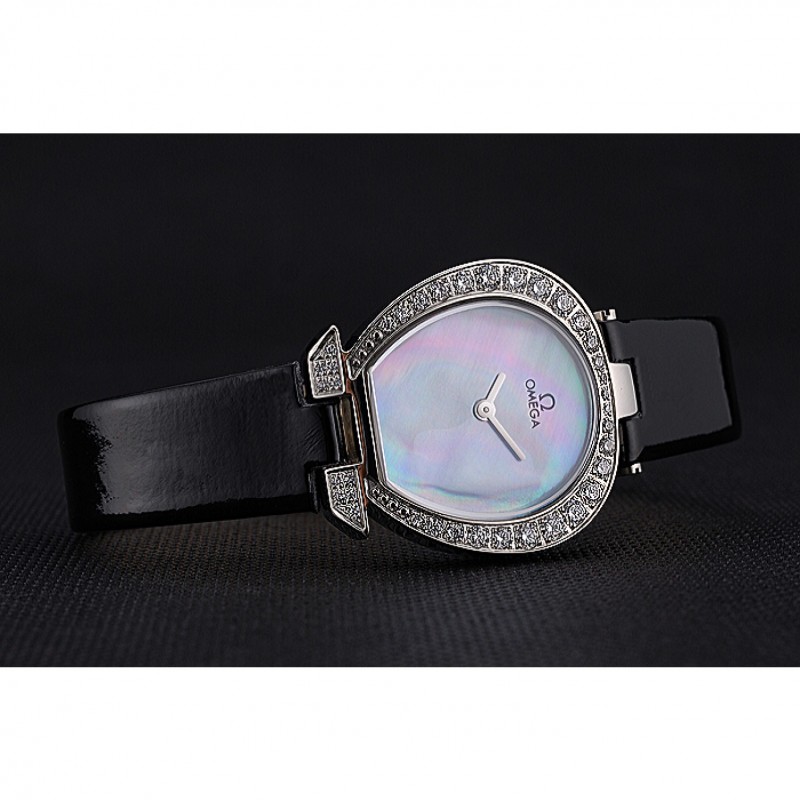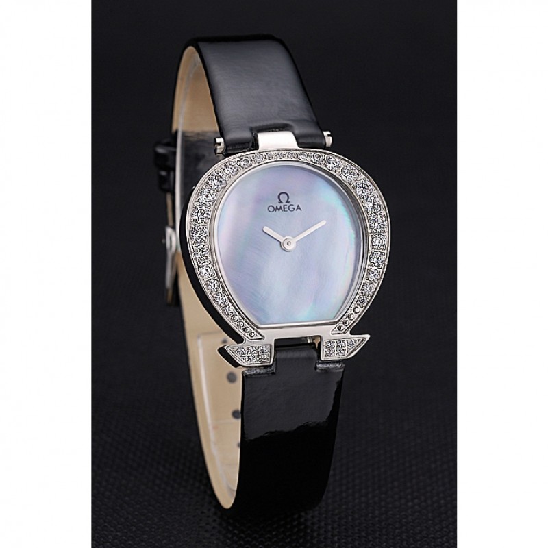 pulsera:correa de cuero negroOmega y el logotipo en relieve de calor con el logotipo de tallado, pulido de acero inoxidable gancho hebilla de cierre