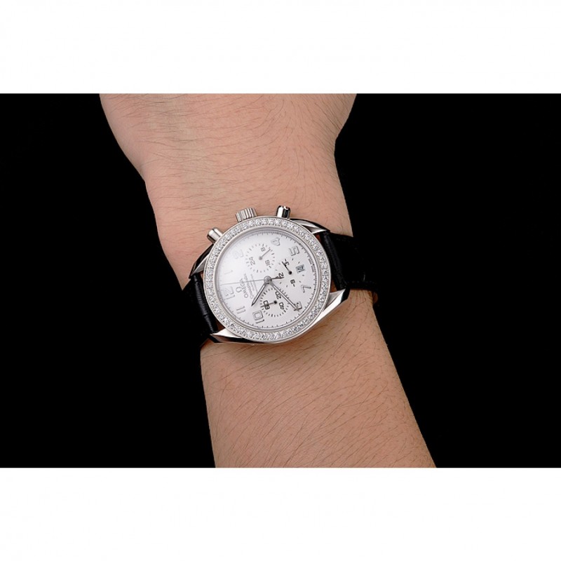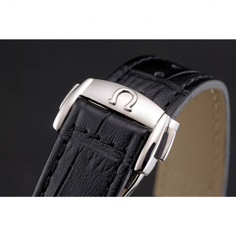 pulsera: correa de piel de cocodrilo Negro con el logotipo de Omega tallada de acero inoxidable pulido gancho de liberación empuje del corchete