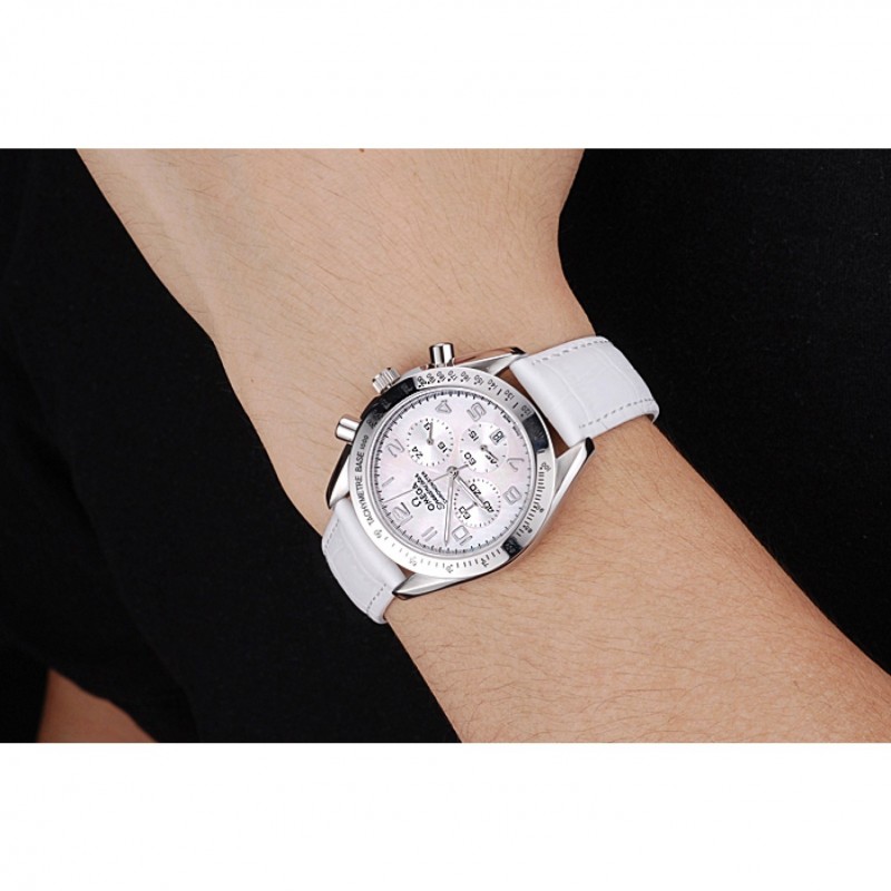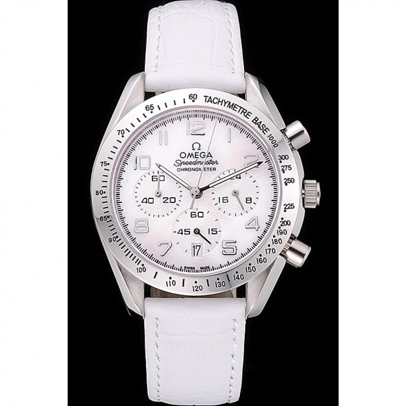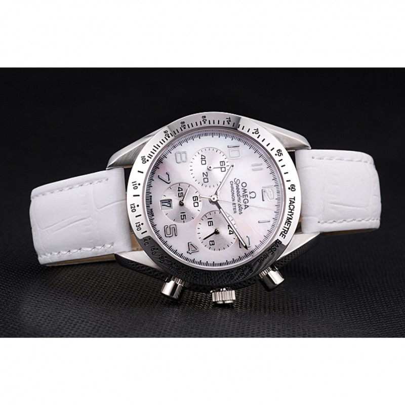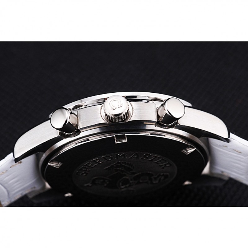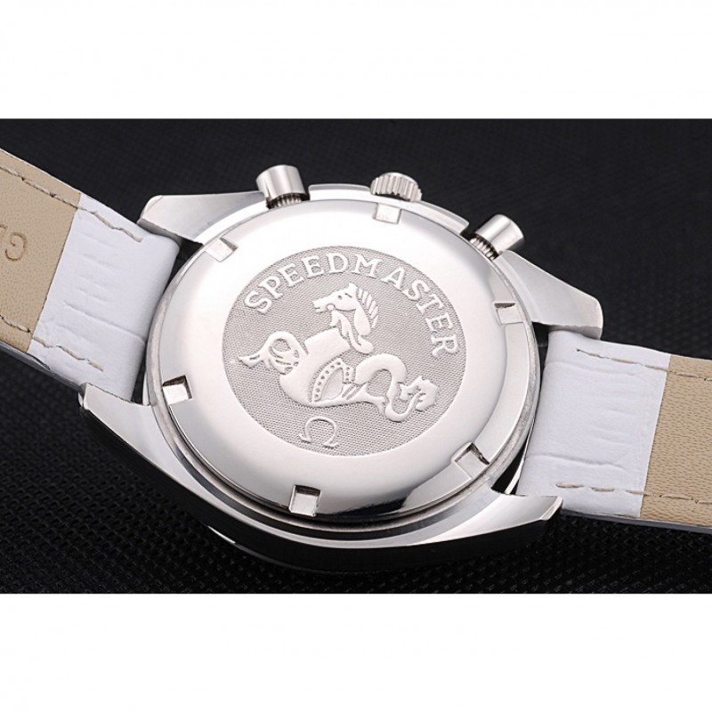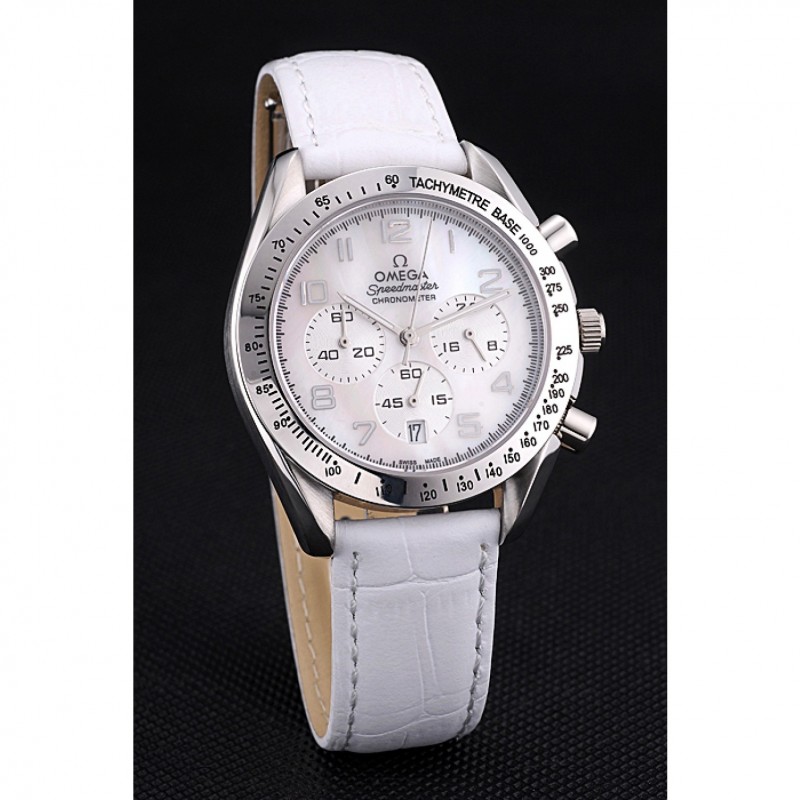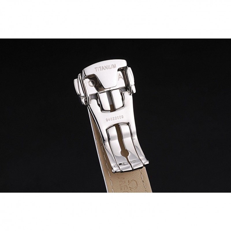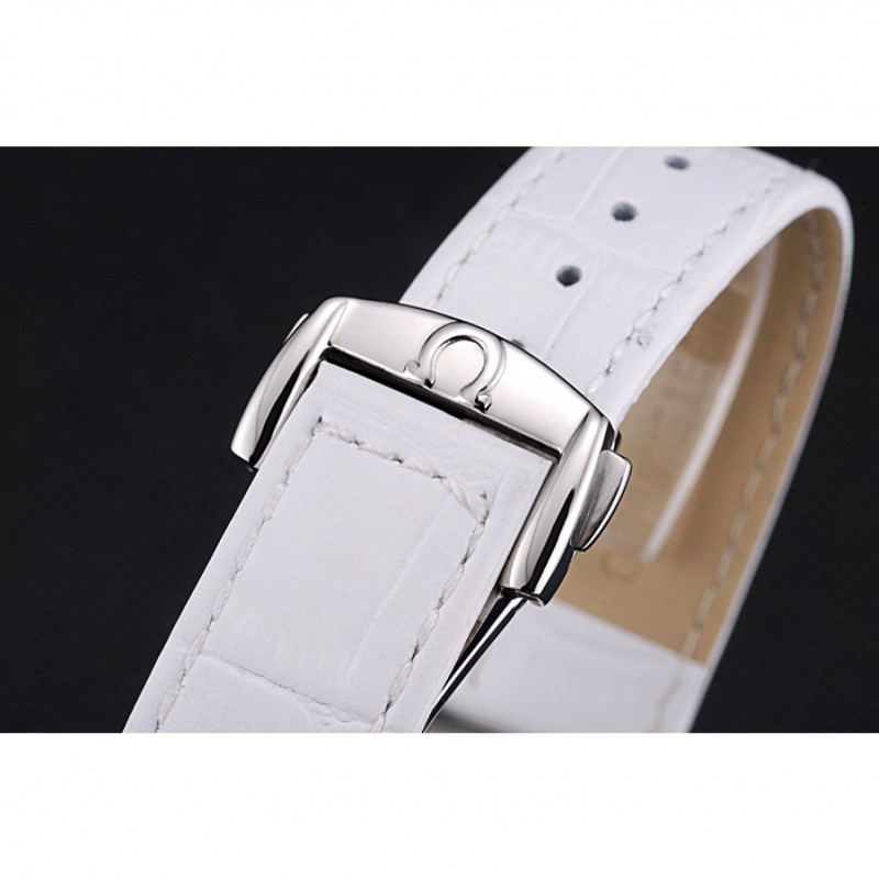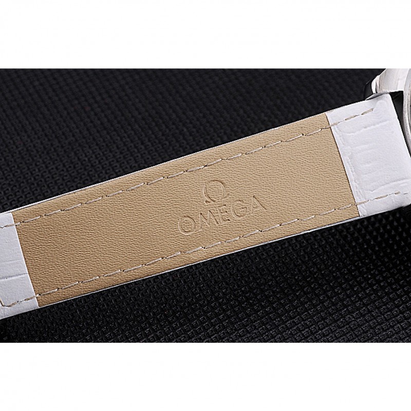 pulsera:correa de piel de cocodrilo blancoOmega y el logotipo en relieve de calor con el logotipo grabado pulido gancho de acero inoxidable cierre