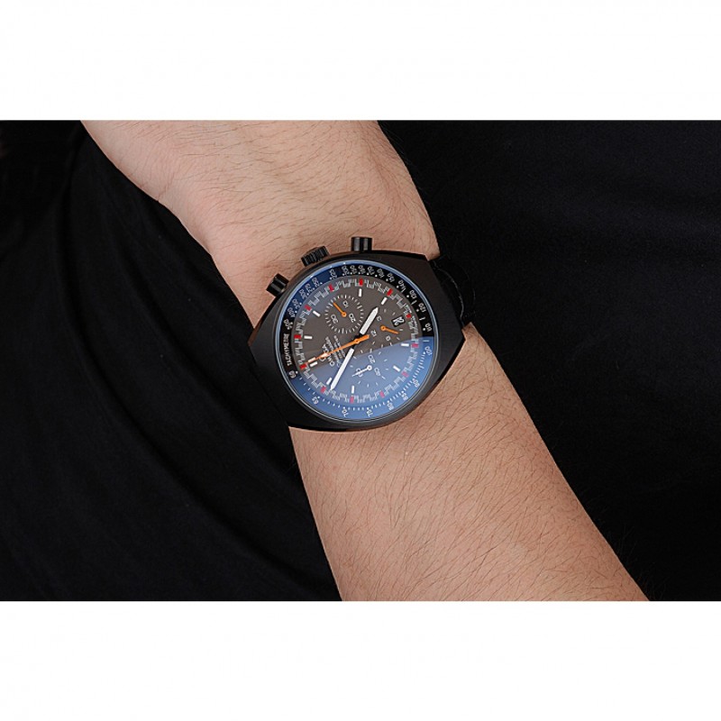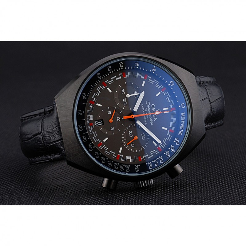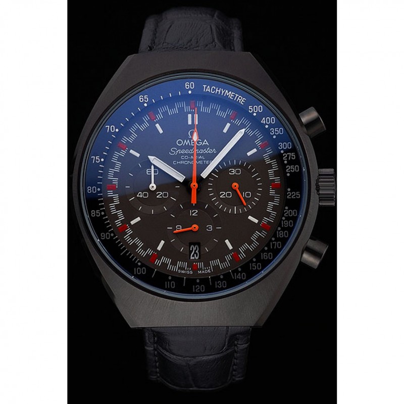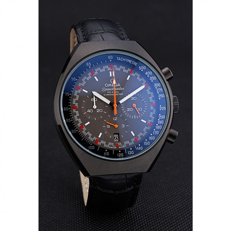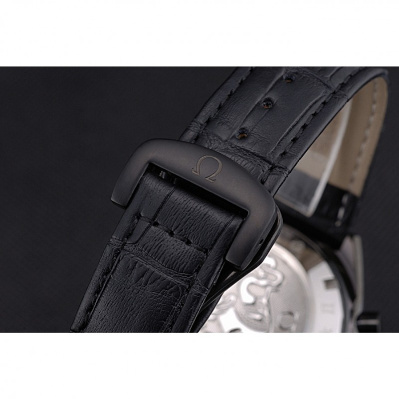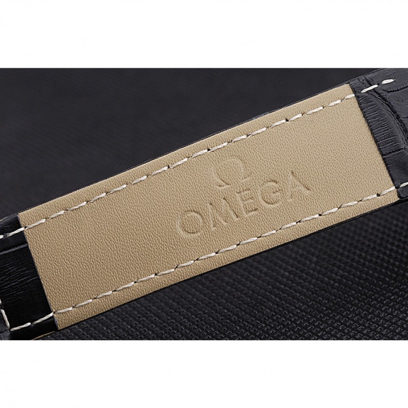 pulsera: correa de piel de cocodrilo negro Omega y el logotipo en relieve de calor con el logo grabado broche de gancho de iones de chapado