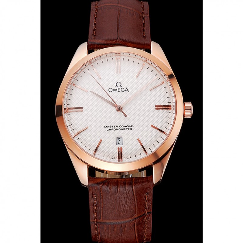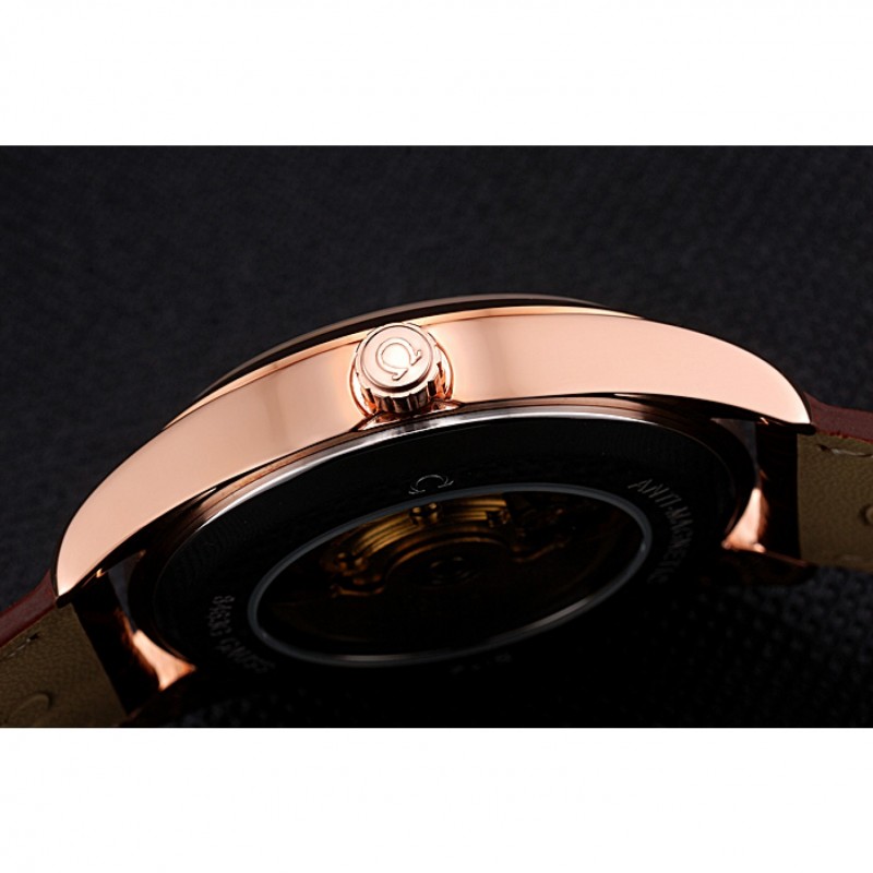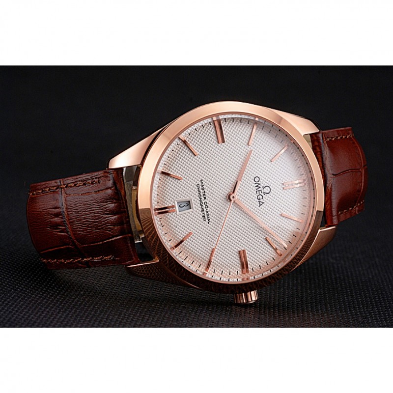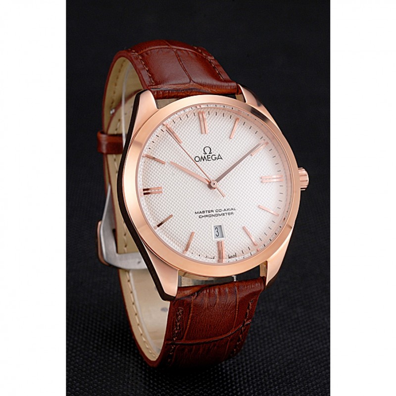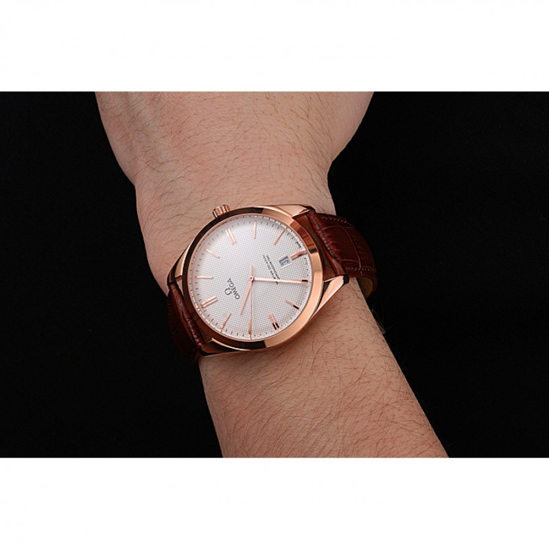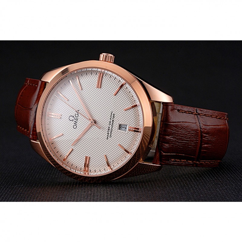 pulsera: logo y el calor Omega en relieve correa de piel de cocodrilo marrón con Omega logotipo de 18k grabado de oro rosa plateado gancho de cierre de