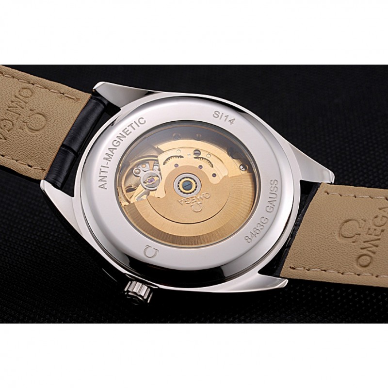 Volver: de acero inoxidable pulido snap-in de nuevo con la mecánica-revelador centro y grabados Omega